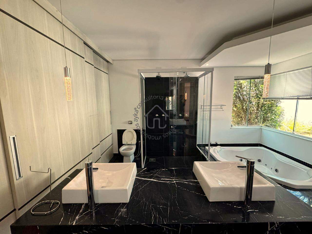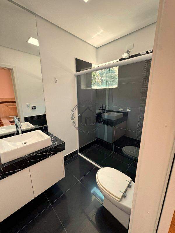 São 3 quartos (suítes), sendo uma suíte master com banheira, além de um lavabo para visitas e garagem coberta para 3 carros.