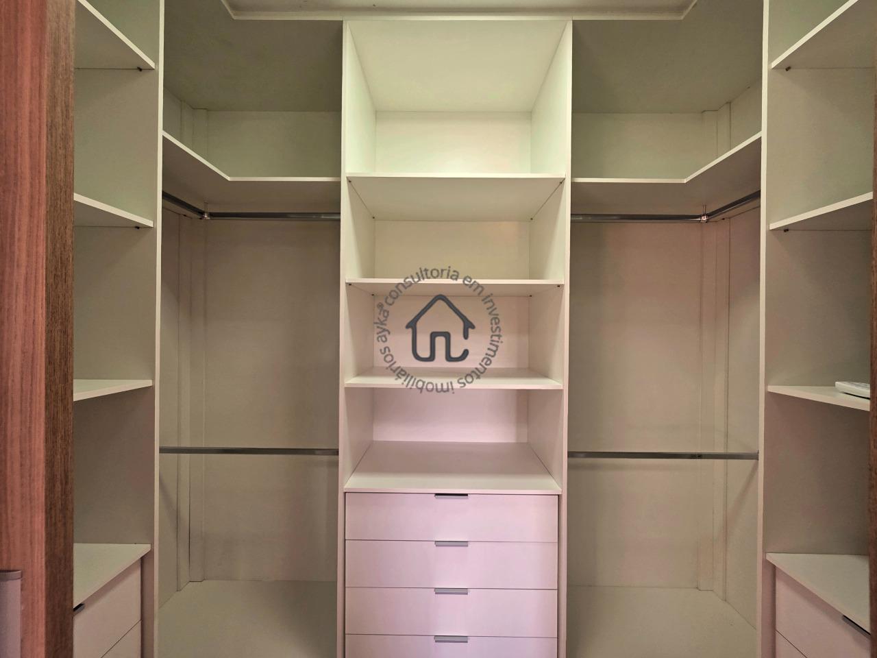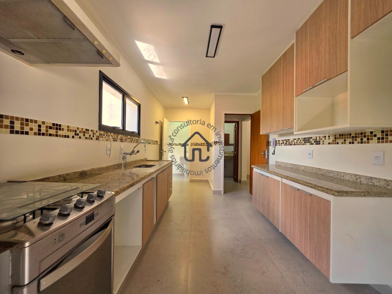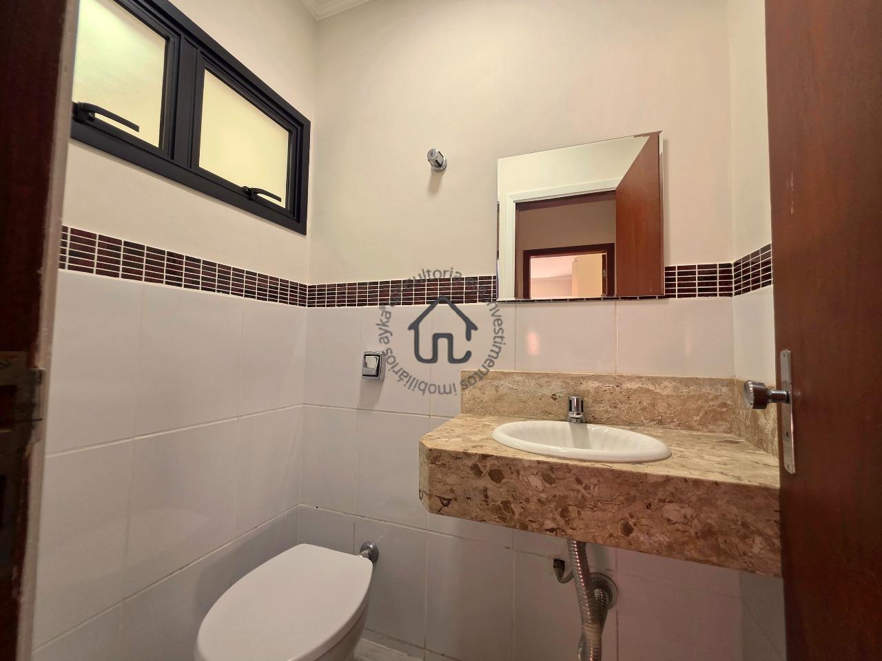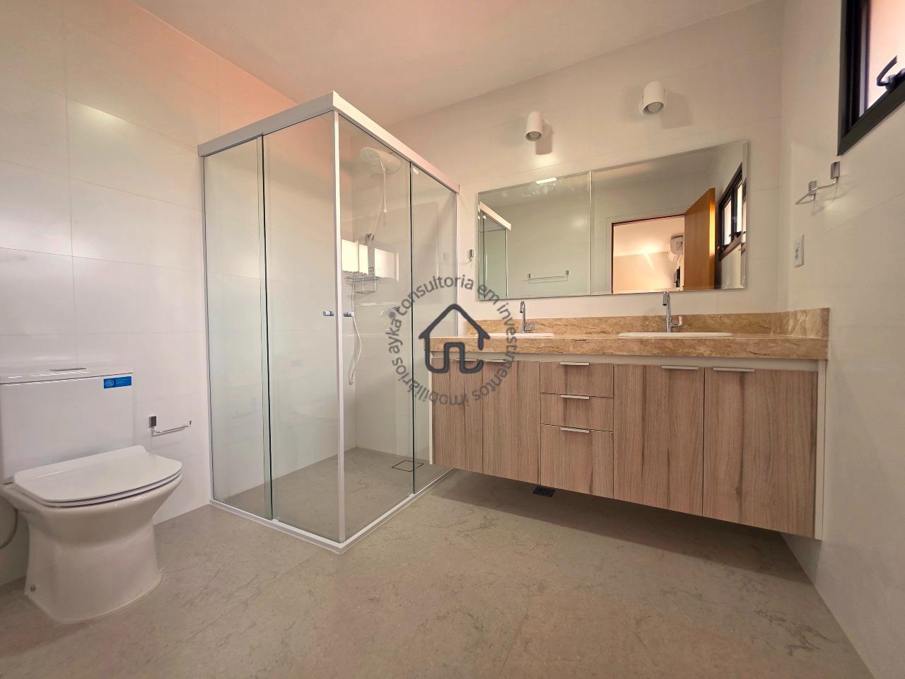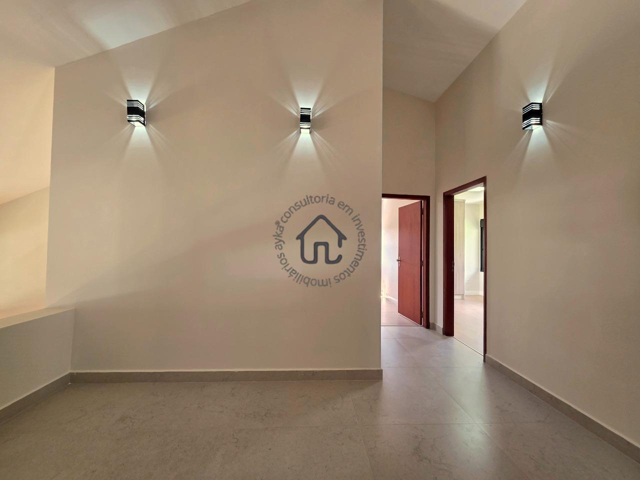 No pavimento superior estão localizadas três quartos (suítes), todas com armários planejados e ar-condicionado. A suíte master se destaca pelo closet, cuba dupla e excelente conforto, além de um espaço aberto ideal para escritório ou sala íntima. No pavimento inferior, o ambiente social é amplo e elegante, composto por sala para três ambientes com varanda e pé-direito duplo, proporcionando muita luminosidade e ventilação natural. A cozinha é equipada com armários planejados, fogão e coifa, além de contar com área de serviço e depósito ou despensa.