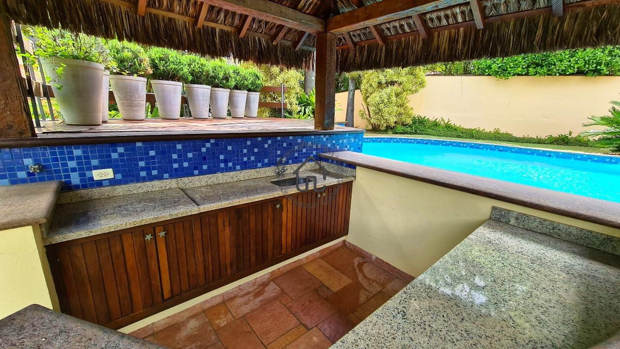 Churrasqueira com ampla bancada com armários e churrasqueira em aço inoxa gás importada, coifa.Piscina e Bar Acapulco com quiosque, bancada e armário, banquetas em aço inox.
