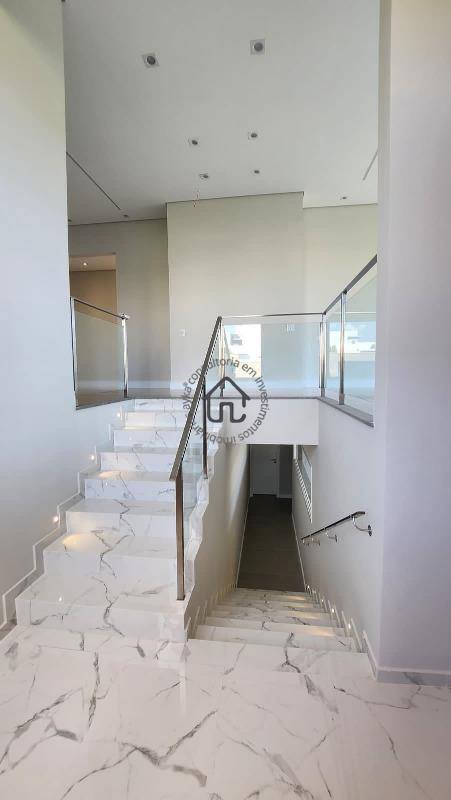 Com 5 suítes (sendo 4 com piso em madeira Indusparket), sala de estar, sala de jantar, cozinha com ilha, área gourmet completa, home theater, lavabo, piscina com raia e hidro, banheiro para a área externa, lavanderia, pontos para fire place, infraestrutura pronta para aspiração central, automação, ar condicionado e aquecimento solar, persianas automatizadas, fechadura digital na porta principal, depósito, sótão e muitos outros detalhes.