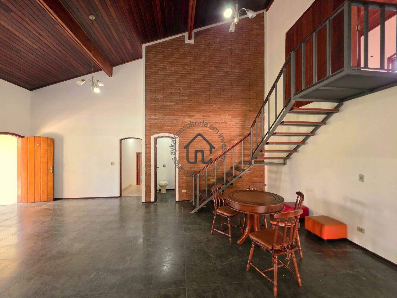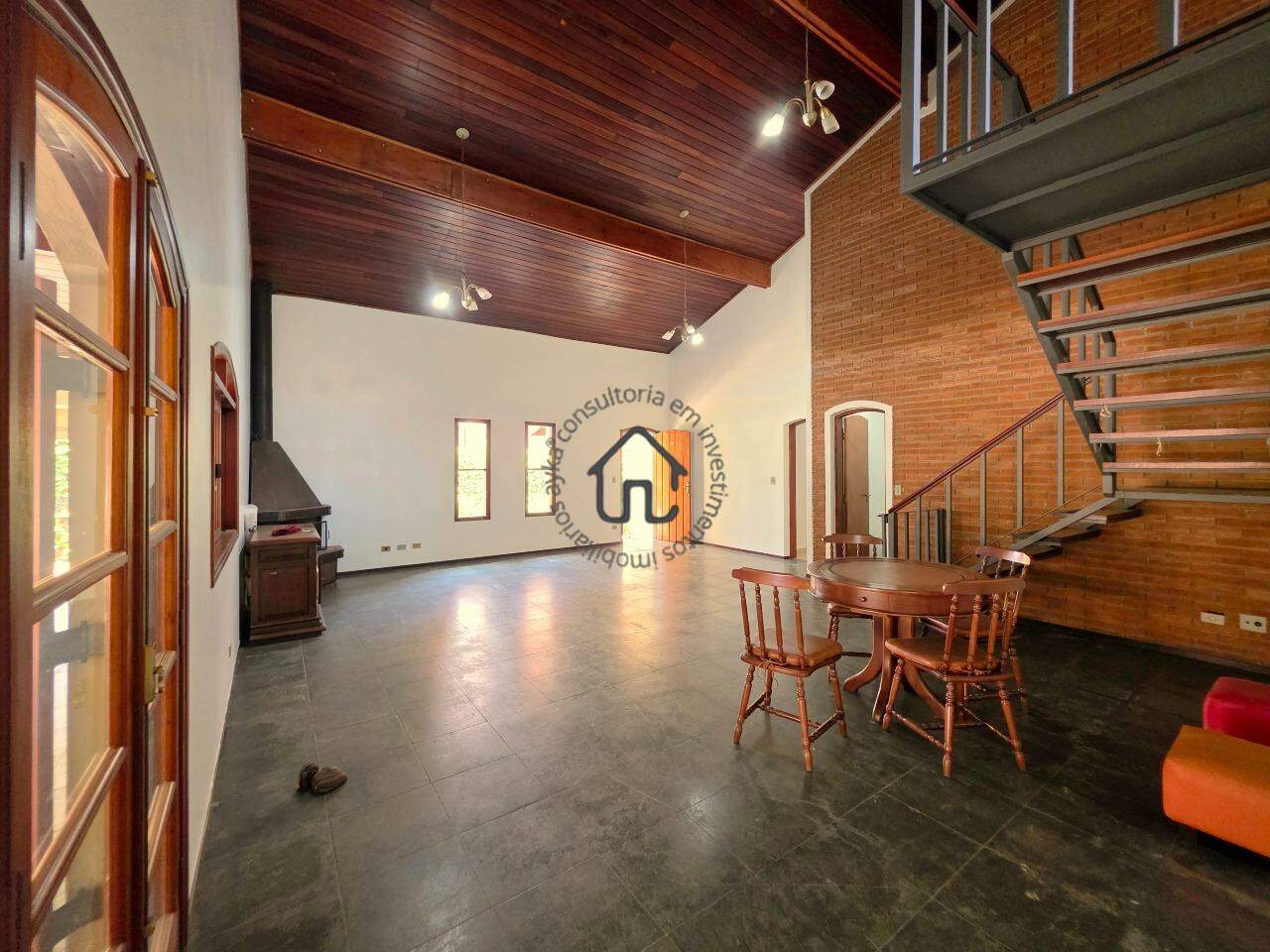 Casa estilo chácara para locação no Condomínio São Joaquim, com 386,48m² de área construída em um terreno de 1.000m². Logo na entrada, o charme do pé-direito duplo e a lareira na ampla sala para dois ambientes criam uma atmosfera acolhedora e elegante, complementada por um lavabo e uma agradável sala de jantar. A cozinha é totalmente planejada, e a lavanderia conta com despensa, garantindo praticidade no dia a dia. Apenas três degraus, estão os quatro quartos mobiliados, sendo duas suítes confortáveis e bem iluminadas.