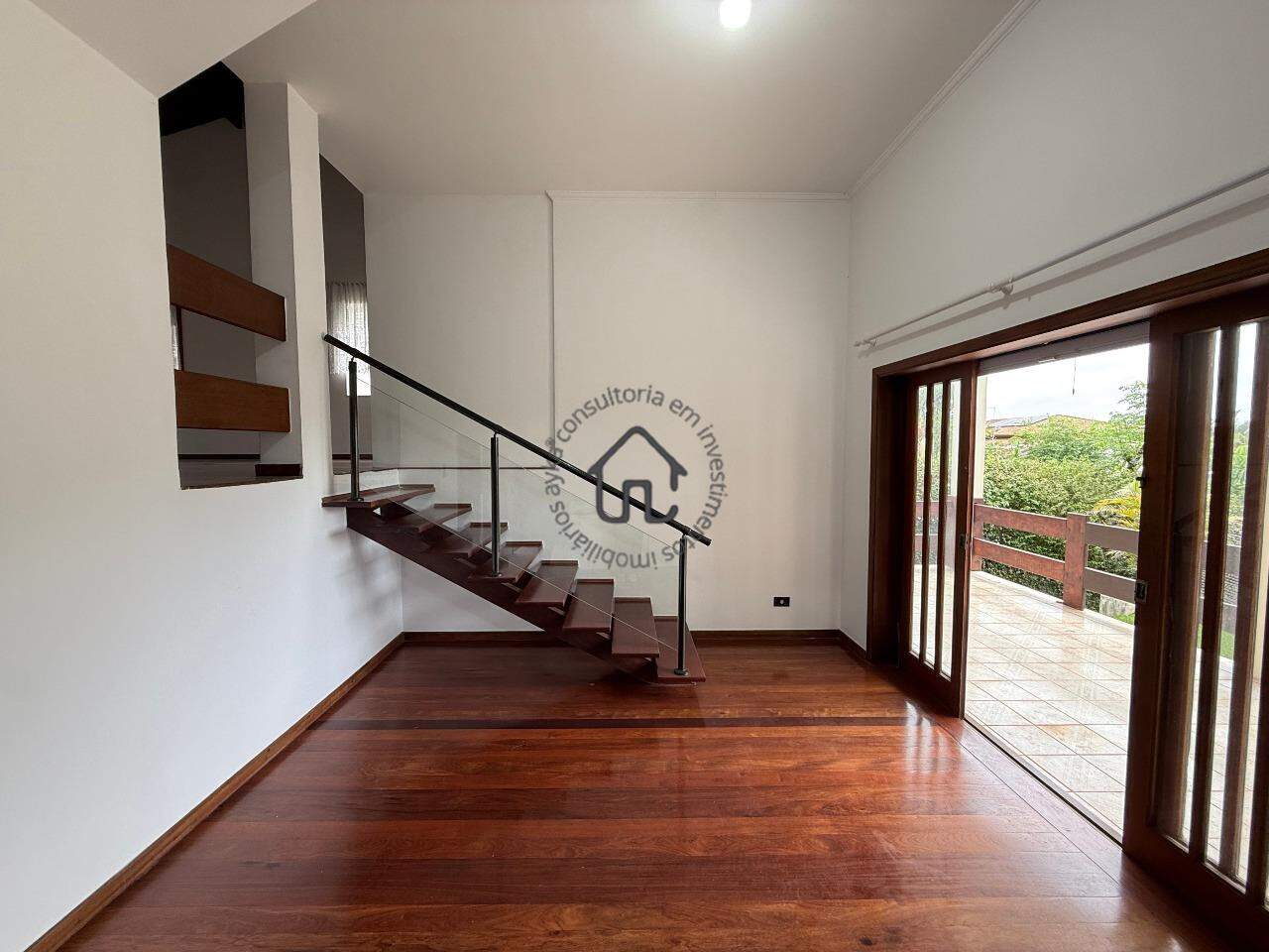 Descendo para o nível inferior, a cozinha espaçosa se revela, complementada por uma prática despensa para organização. Subindo as escadas a partir do hall de entrada, a área íntima da casa oferece privacidade e conforto com três quartos (suítes) . Duas delas possuem varanda, um convite diário para apreciar a vista. Todos os quartos e banheiros são ricos em armários planejados, otimizando o espaço e a organização.