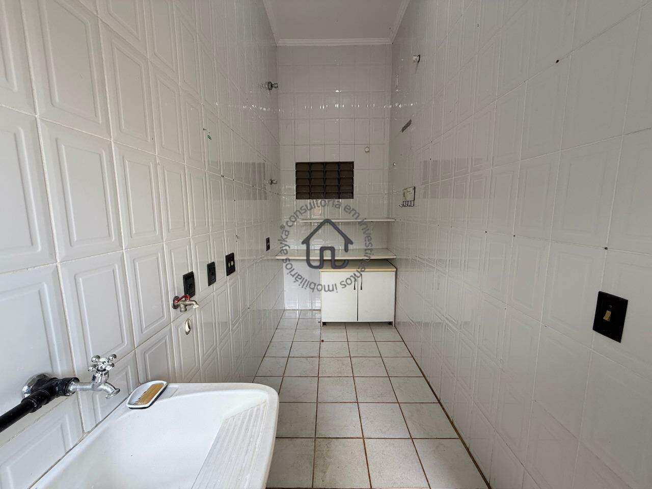 A lavanderia e um banheiro convenientemente localizado próximo à cozinha atendem às necessidades do dia a dia com eficiência.