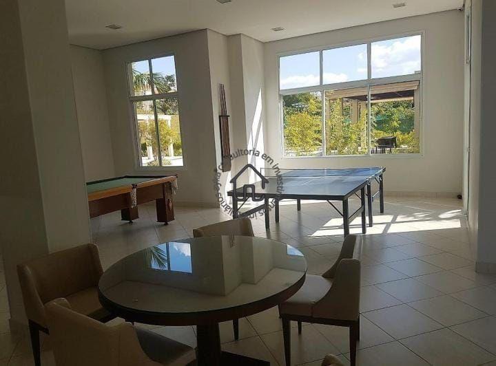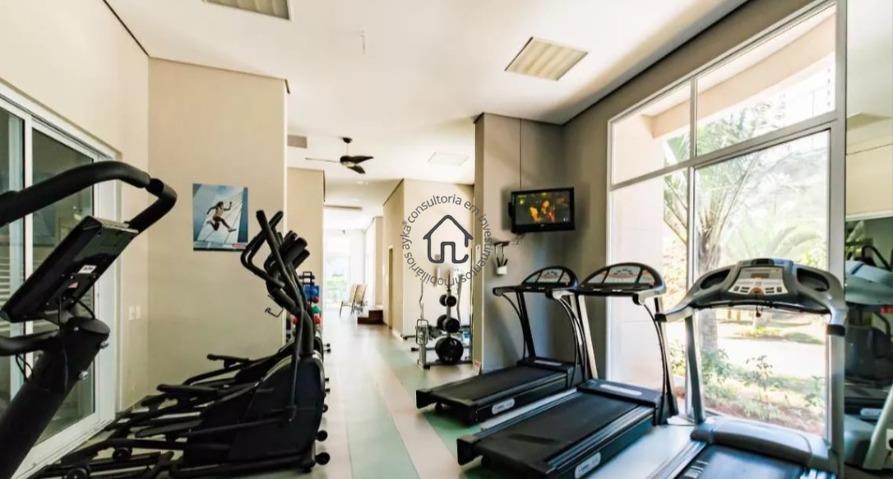 Condomínio com total infraestrutura, portaria com guarita, portões eletrônicos de acesso, salão de festas, salão de jogos, sala de cinema, quadra poliesportiva, quadra de tênis, academia, piscina climatizada, mini campo de futebol e playground.