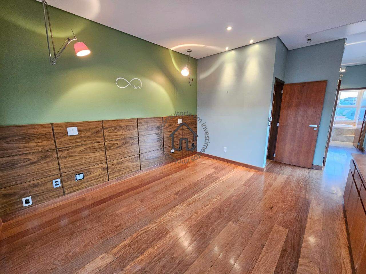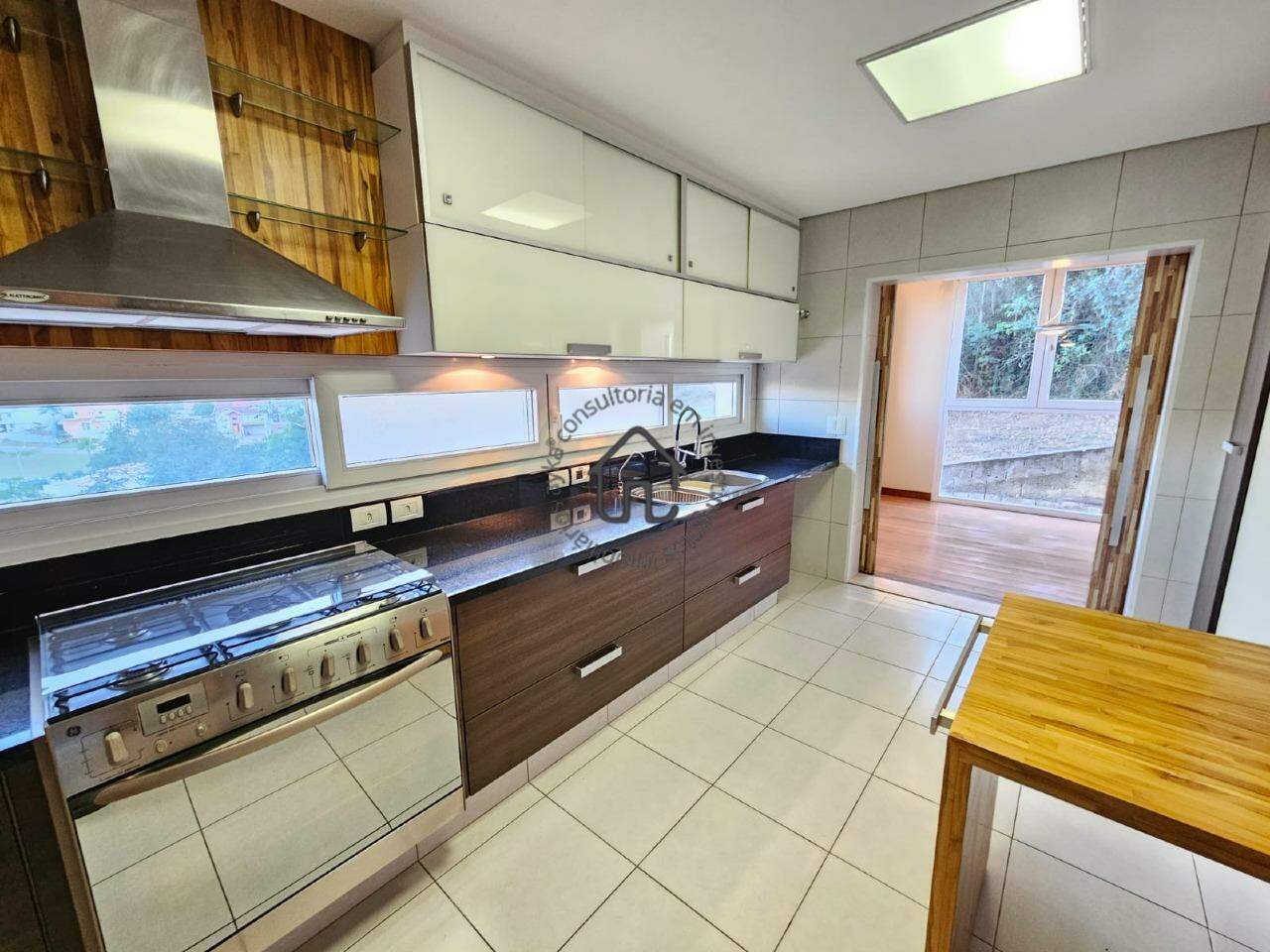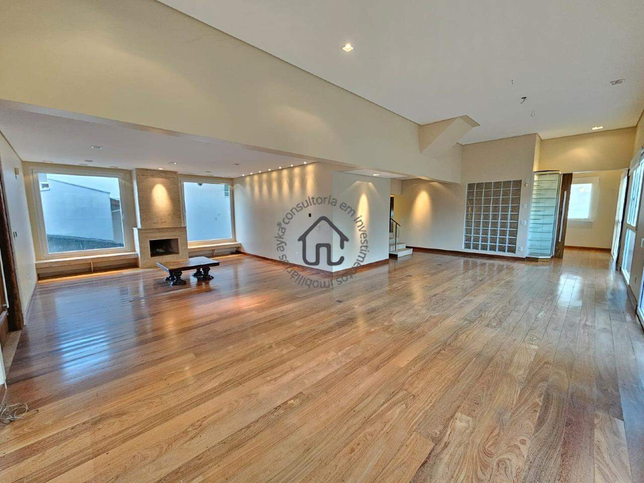 Com 600m² de terreno e 482m² de construção, esta casa oferece amplas salas em conceito aberto com pé direito duplo, lareira, cozinha com planejados de alta qualidade, despensa espaçosa, sala de almoço com vista para o verde, área de serviço, suíte de apoio confortável e lavabo.
