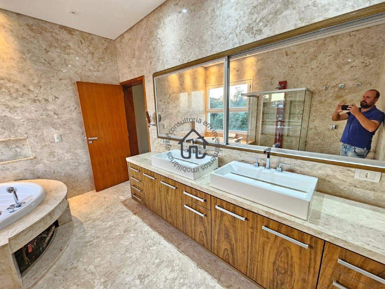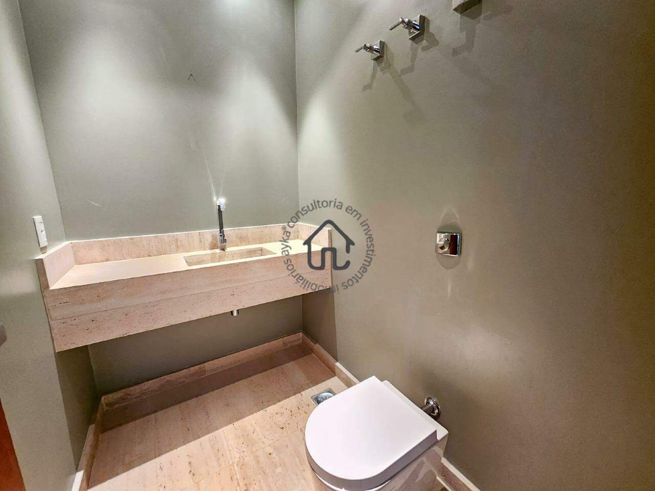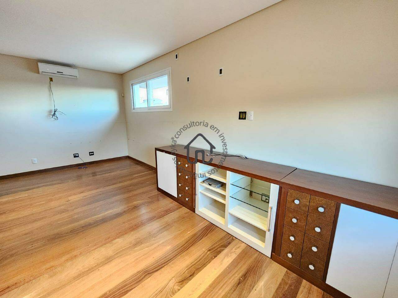 Com 600m² de terreno e 482m² de construção, esta casa oferece amplas salas em conceito aberto com pé direito duplo, lareira, cozinha com planejados de alta qualidade, despensa espaçosa, sala de almoço com vista para o verde, área de serviço, suíte de apoio confortável e lavabo.