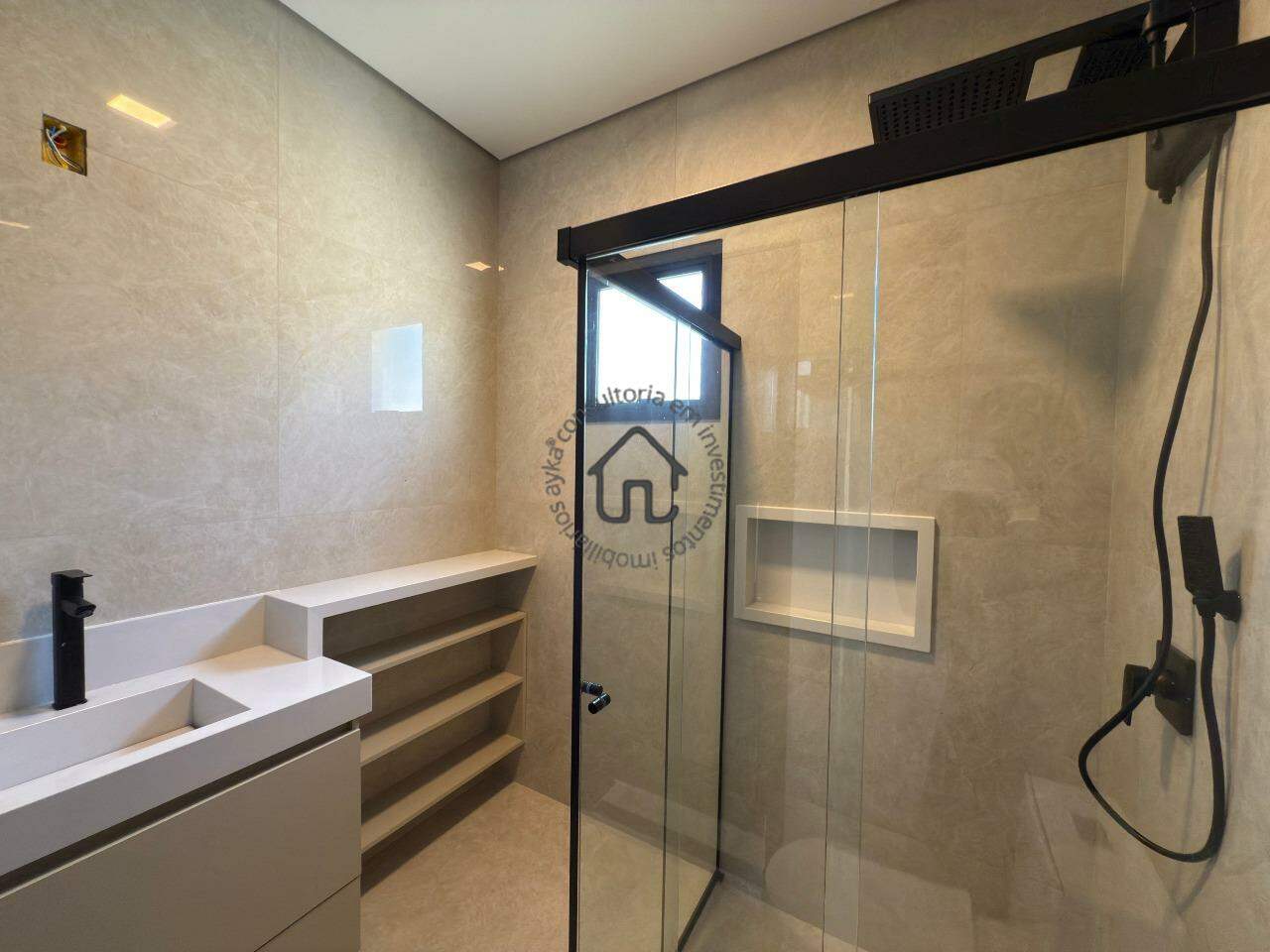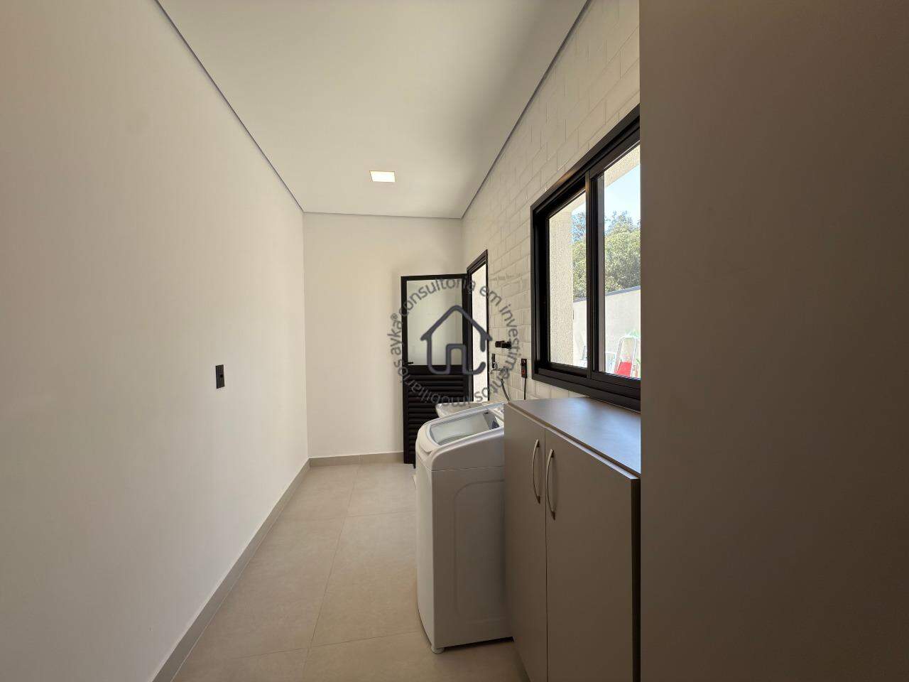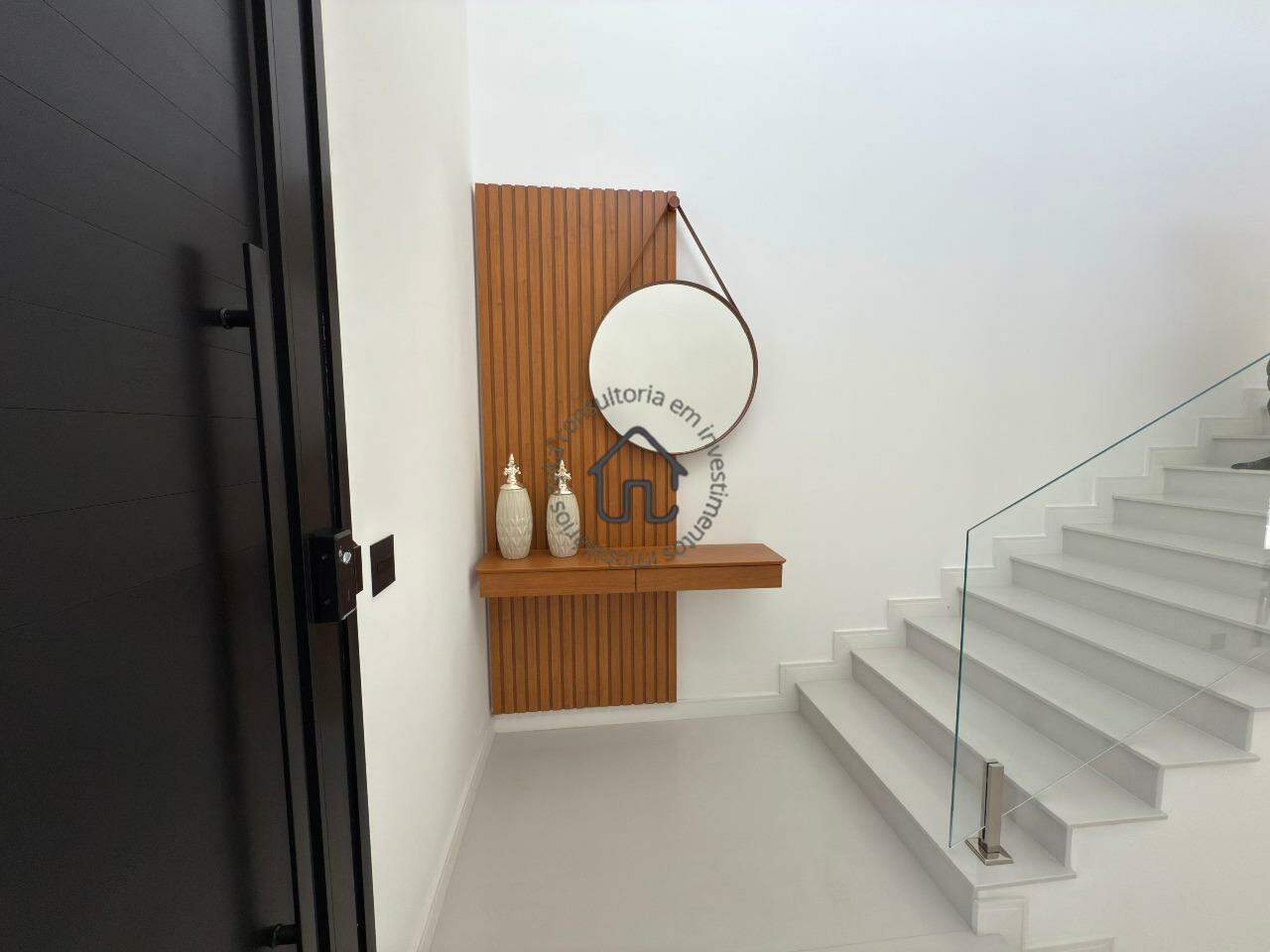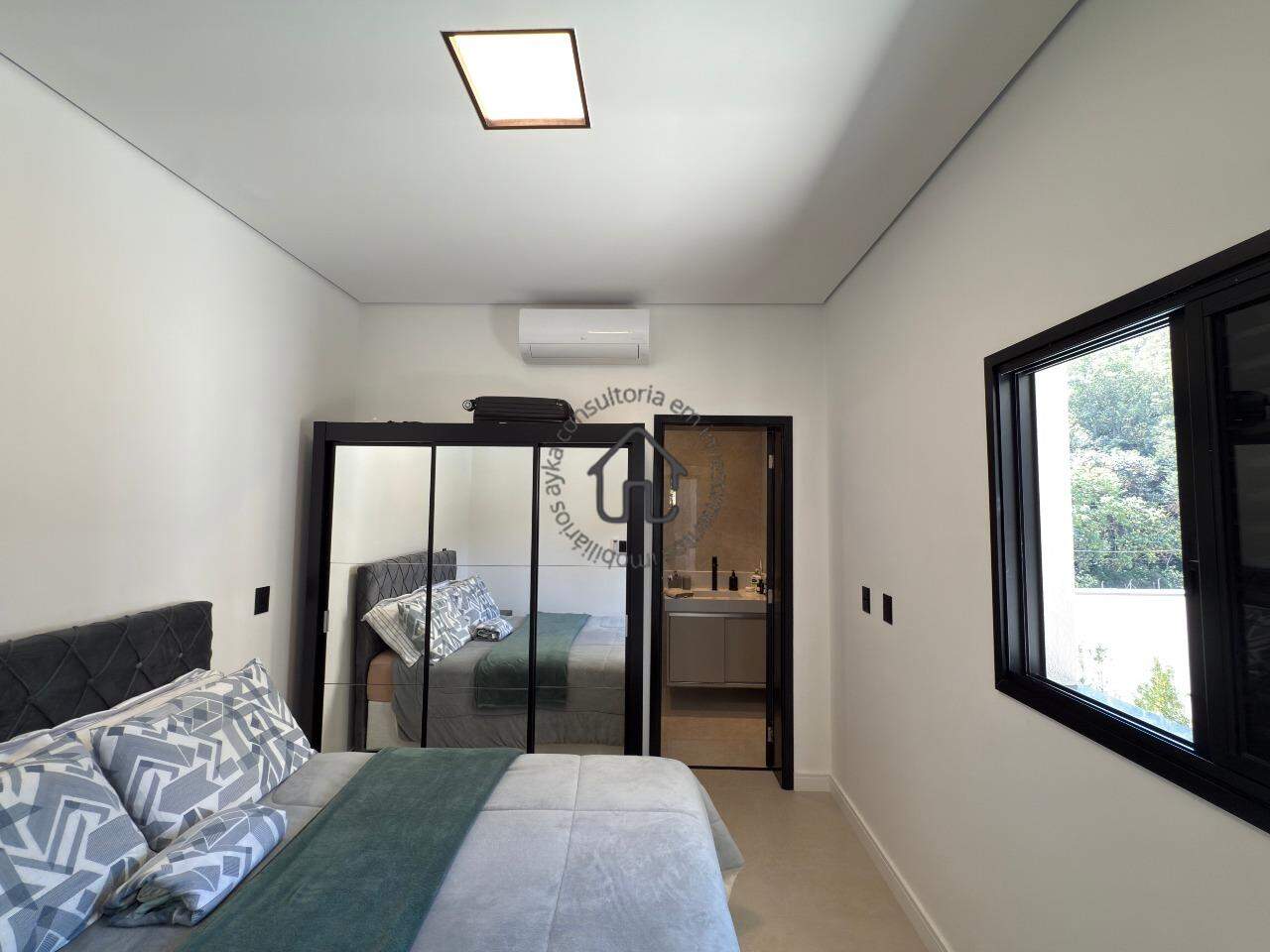Casa nova à venda em Louveira, com habite-se e acabamento de alto padrão. São 253,61 m² de área construída em um terreno de 300 m², em bairro tranquilo e valorizado. O andar superior conta com dois quartos (suítes) com ar-condicionado e uma suíte master com closet e banheira.