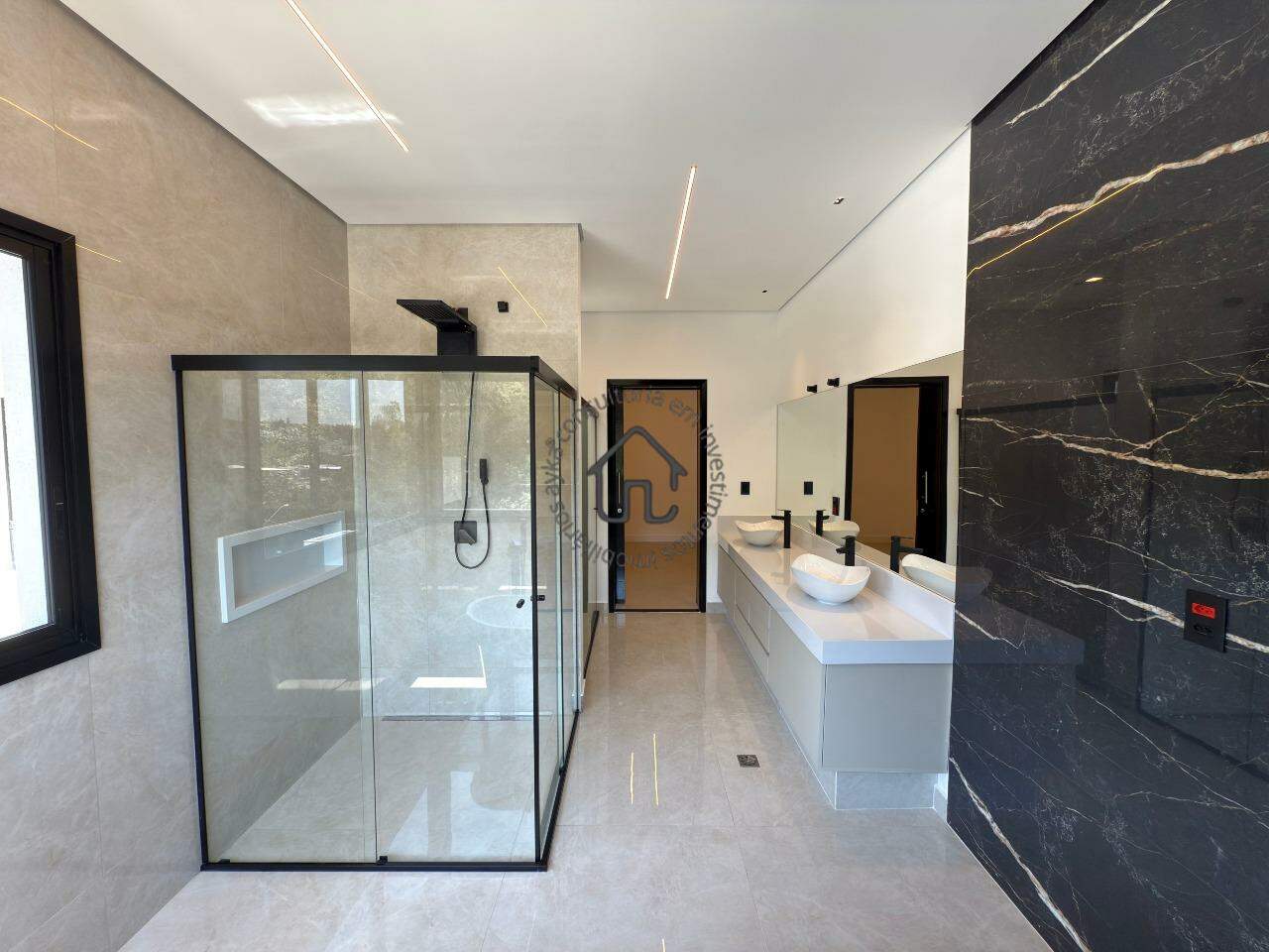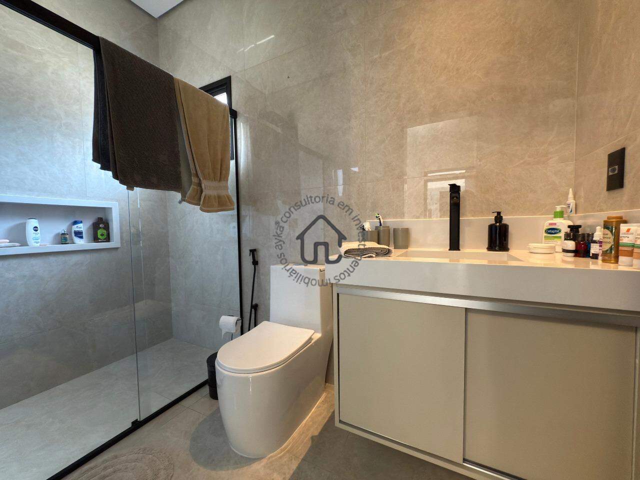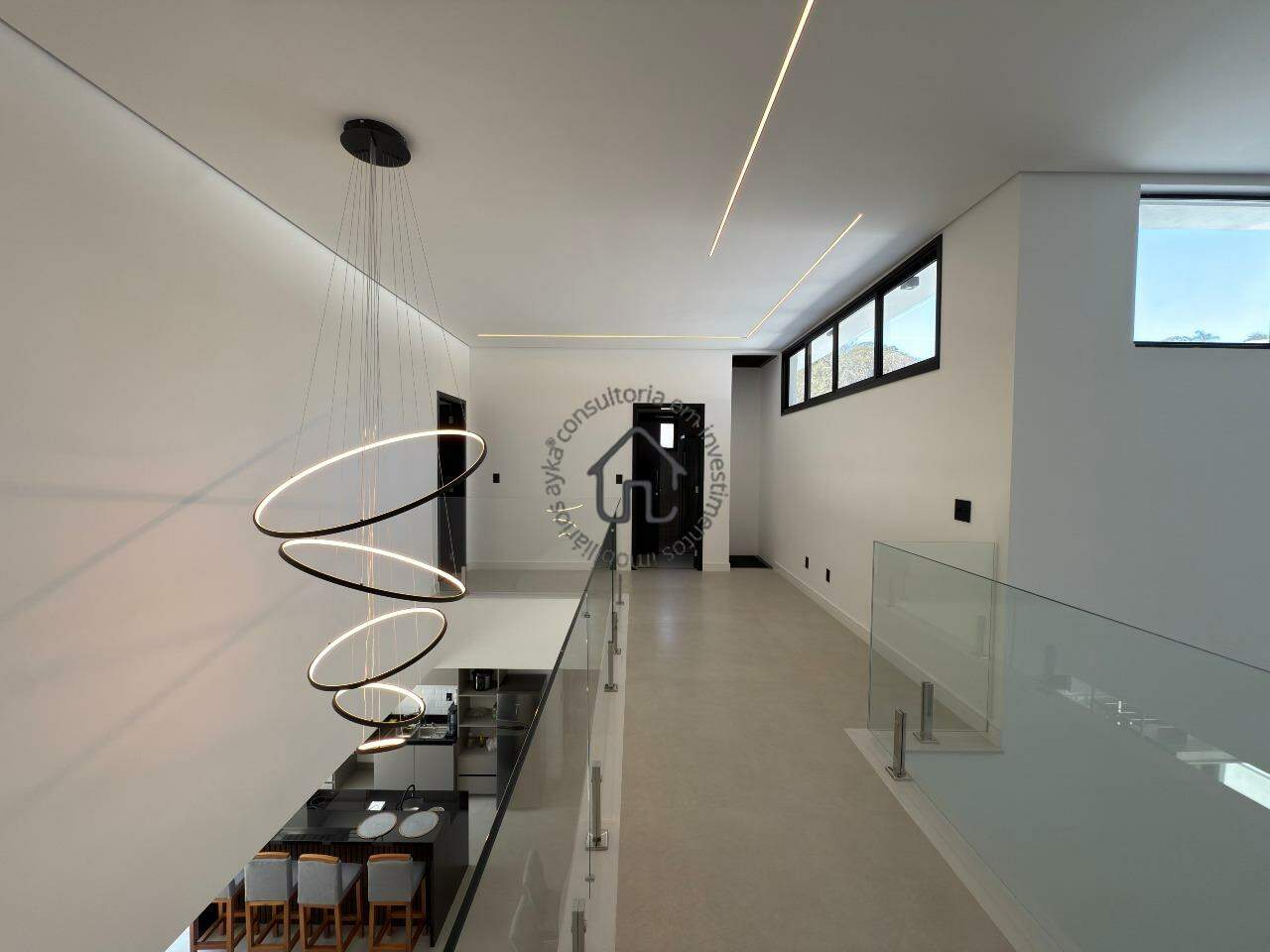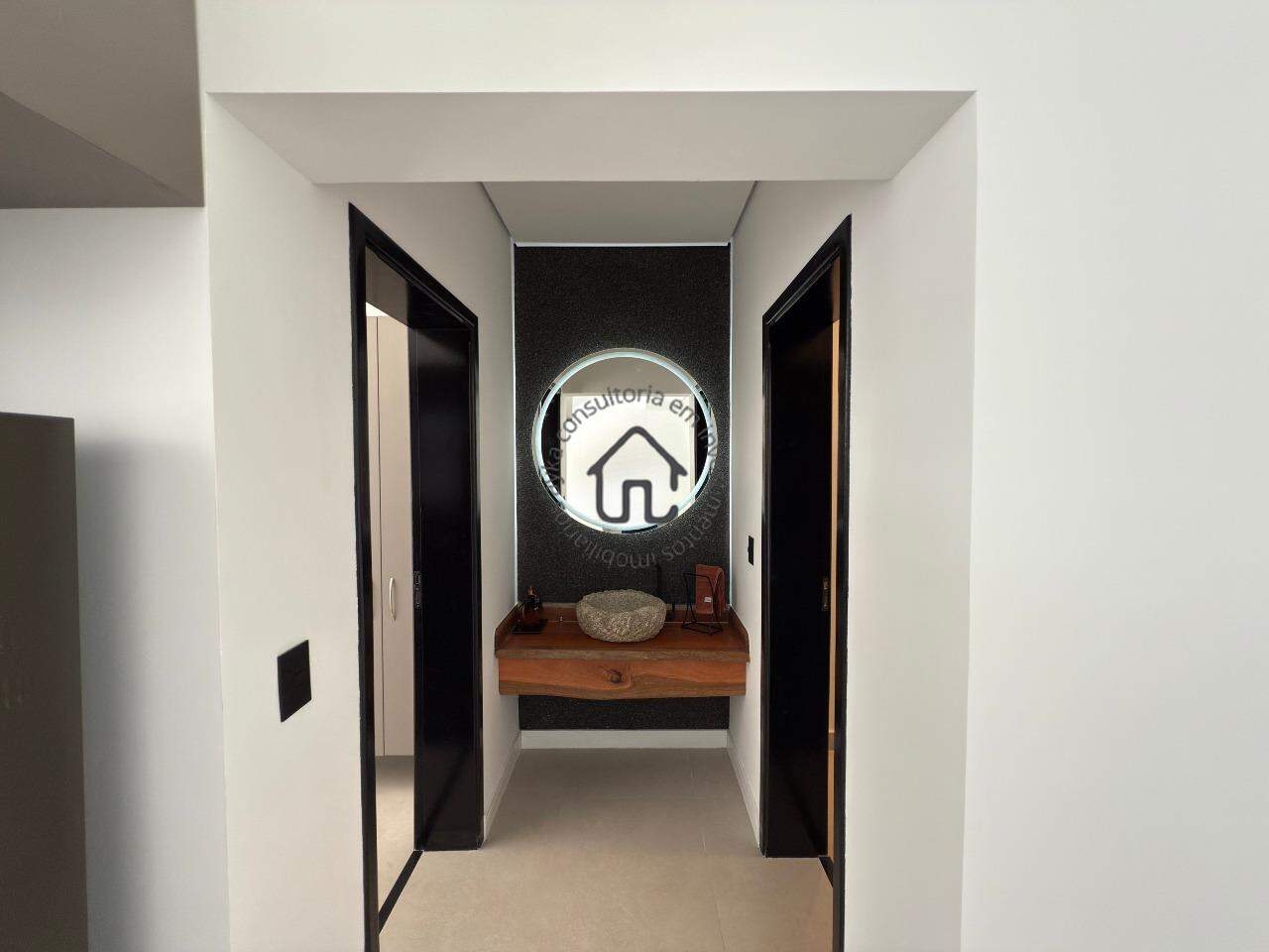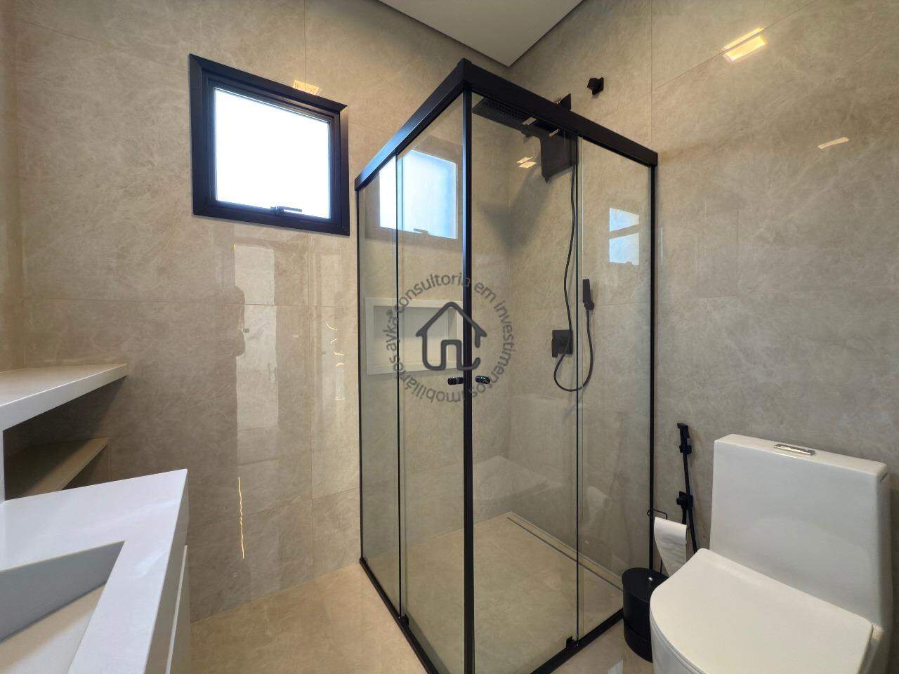 Casa nova à venda em Louveira, com habite-se e acabamento de alto padrão. São 253,61 m² de área construída em um terreno de 300 m², em bairro tranquilo e valorizado. O andar superior conta com dois quartos (suítes) com ar-condicionado e uma suíte master com closet e banheira.