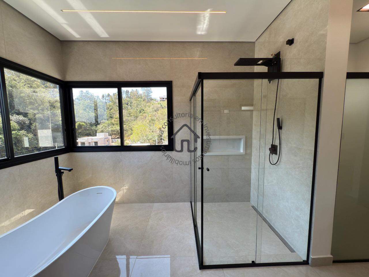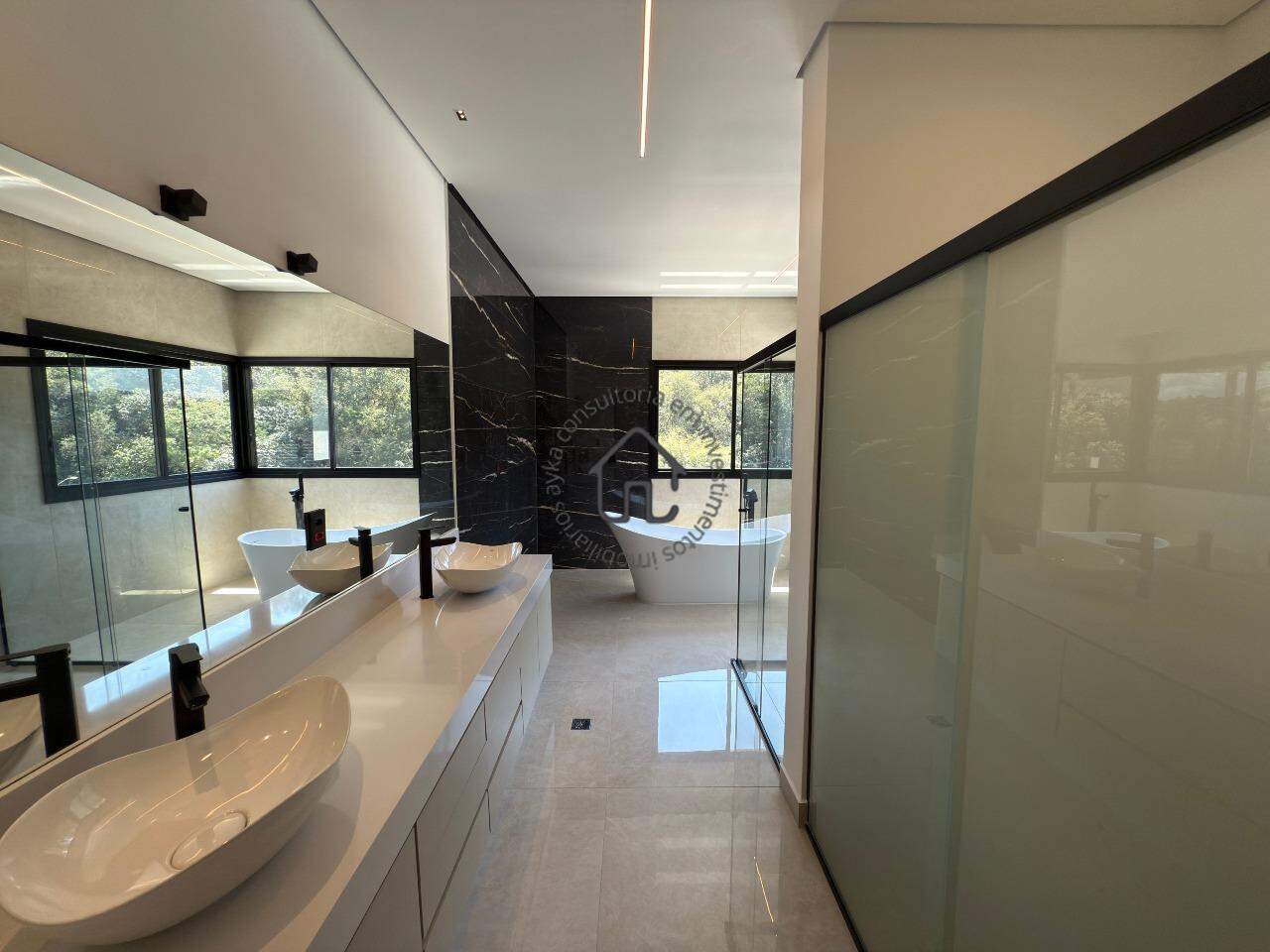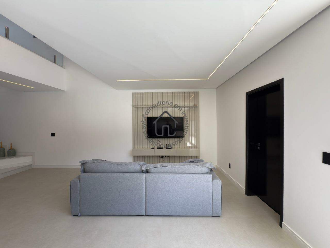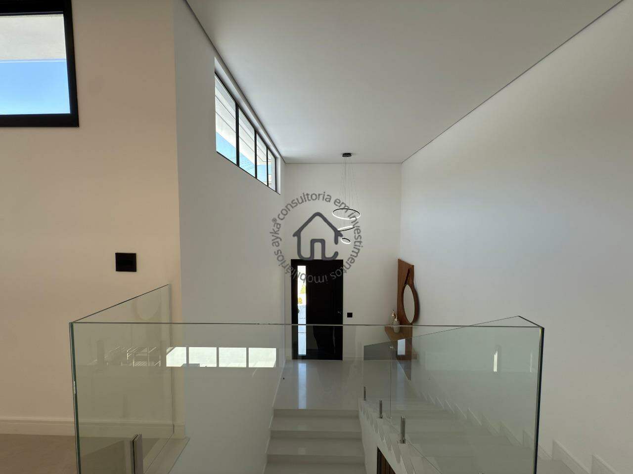 Casa nova à venda em Louveira, com habite-se e acabamento de alto padrão. São 253,61 m² de área construída em um terreno de 300 m², em bairro tranquilo e valorizado. O andar superior conta com dois quartos (suítes) com ar-condicionado e uma suíte master com closet e banheira.