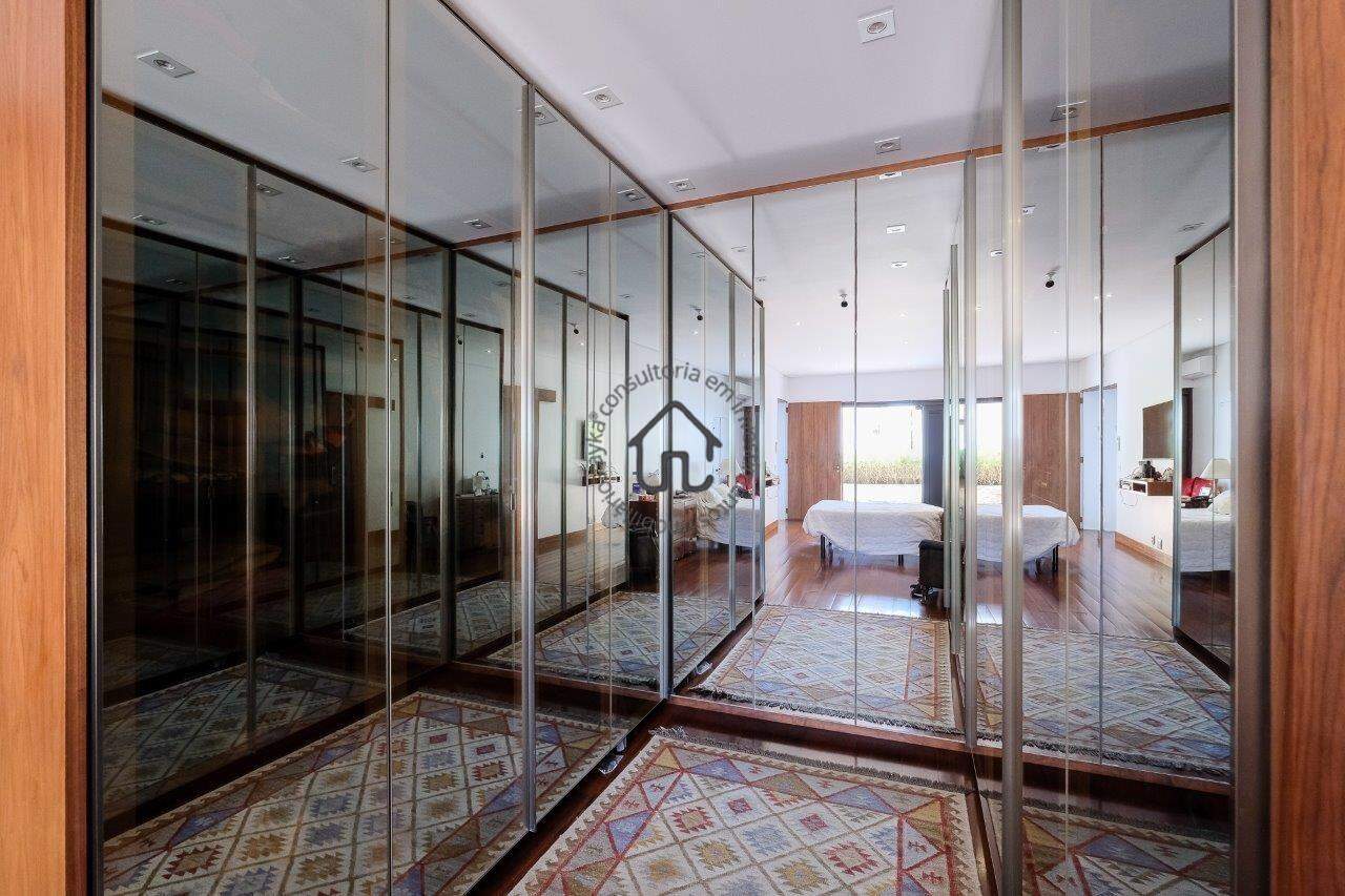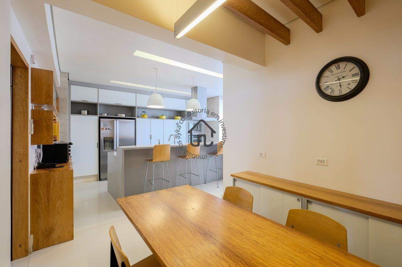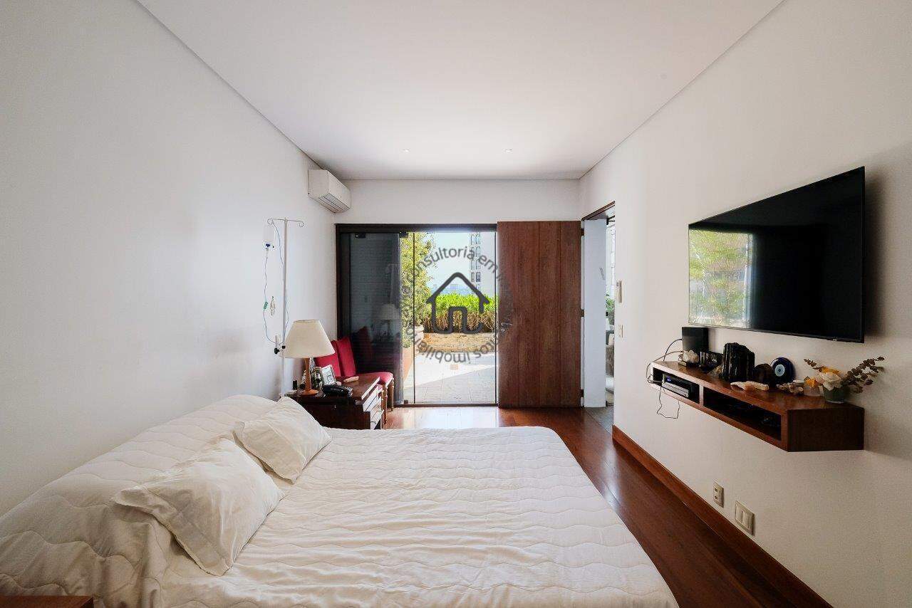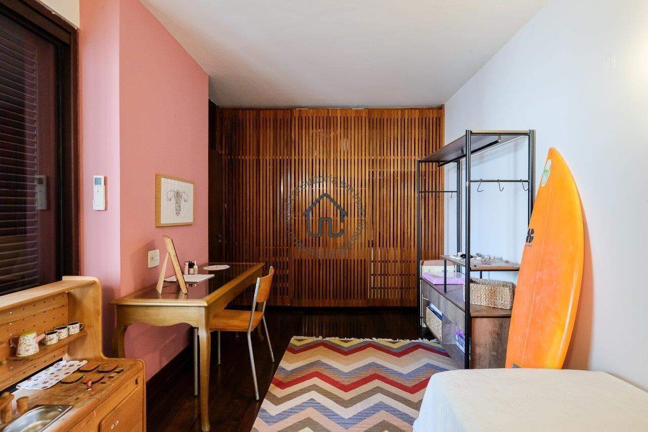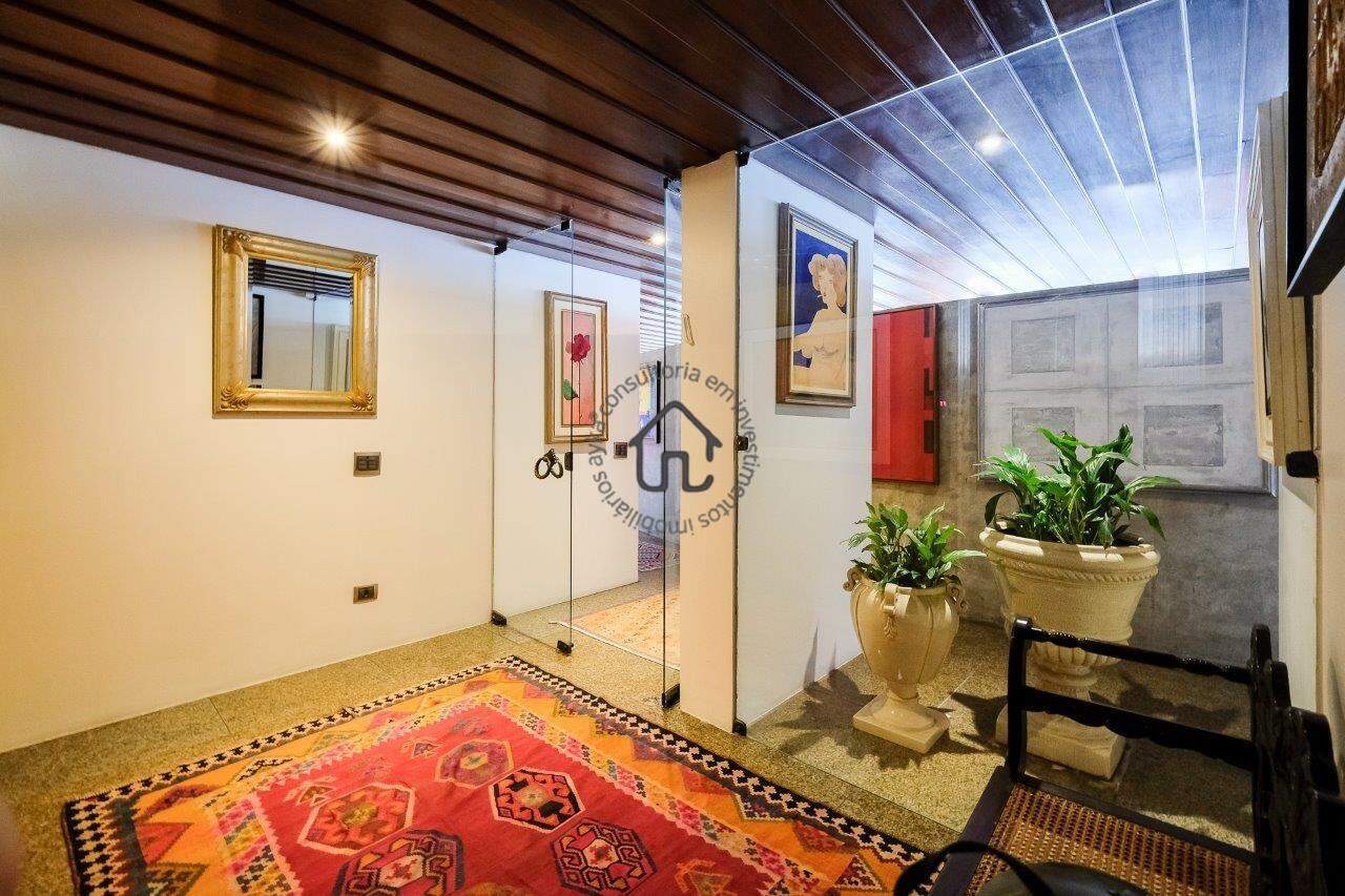 No andar superior, o pé-direito duplo e as portas de vidro conferem imponência e amplitude ao espaço, que também conta com lareira e um escritório reservado, ideal para quem trabalha de casa com conforto e elegância. Um mezanino multifuncional abriga atualmente um ateliê e um estúdio de Pilates, podendo ser adaptado conforme a necessidade do novo morador.