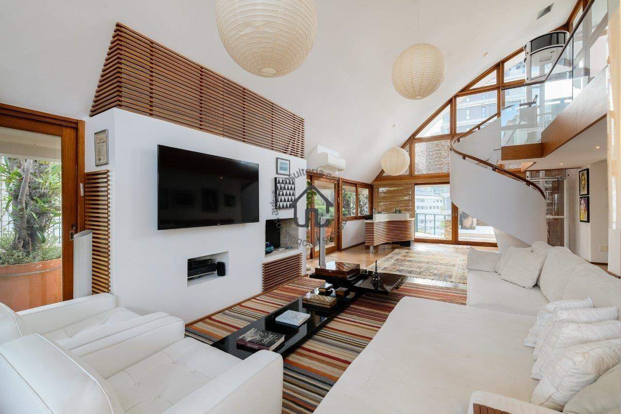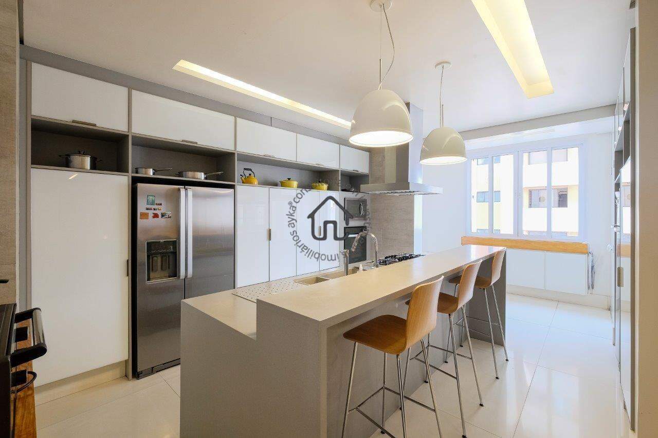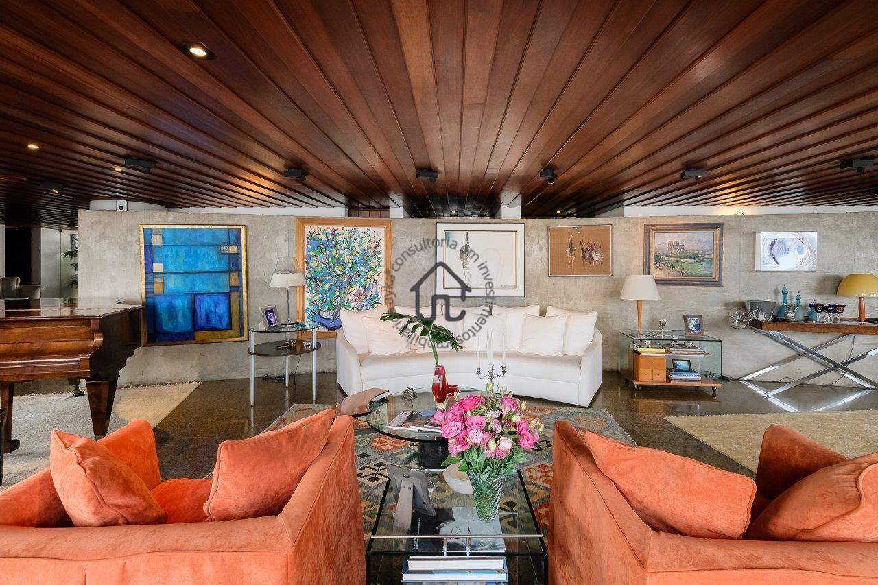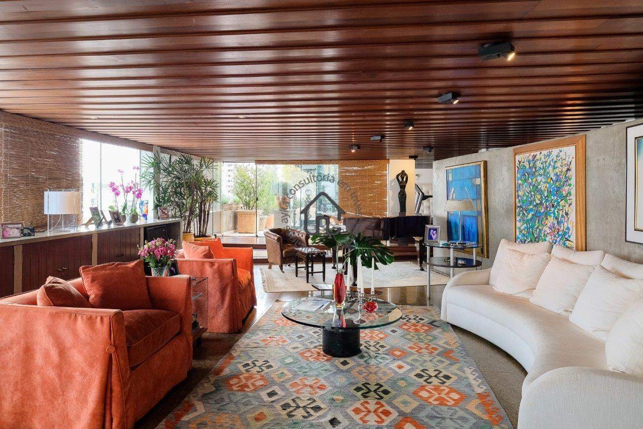 Cobertura duplex no Edifício Flamboyant, em São Paulo, une arquitetura autoral, sofisticação e uma vista deslumbrante da cidade. Com projeto contemporâneo e atmosfera acolhedora, o primeiro piso impressiona pelo living espaçoso para três ambientes, com paredes em concreto aparente e teto revestido em madeira, criando um cenário elegante e moderno. Um lavabo complementa a área social com discrição e estilo. A cozinha, com ilha central e copa, é totalmente integrada à área de serviço e à dependência de funcionários, unindo funcionalidade e bom gosto.