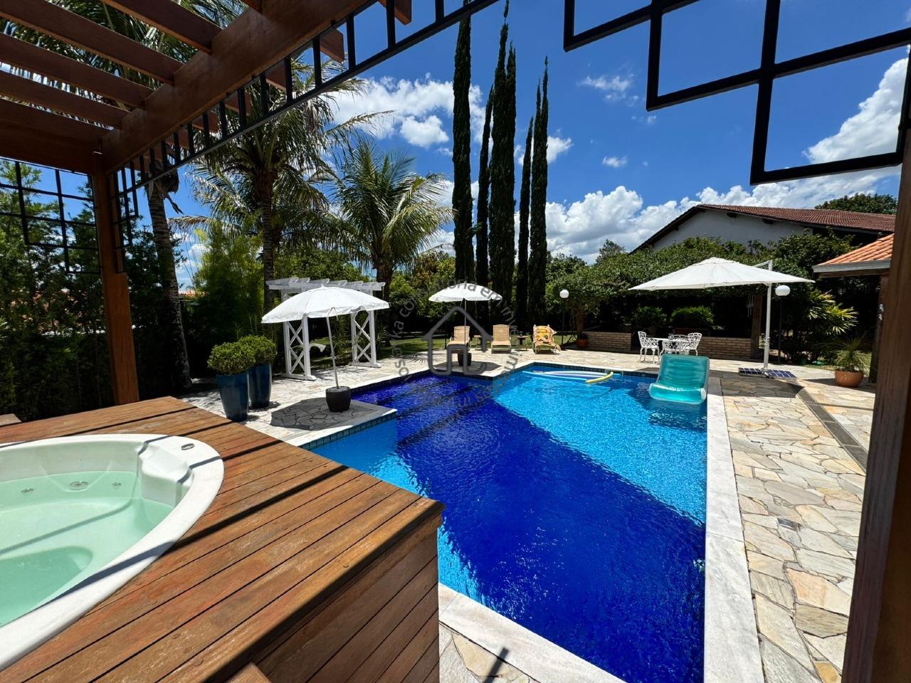 Piscina com hidromassagem e prainha.