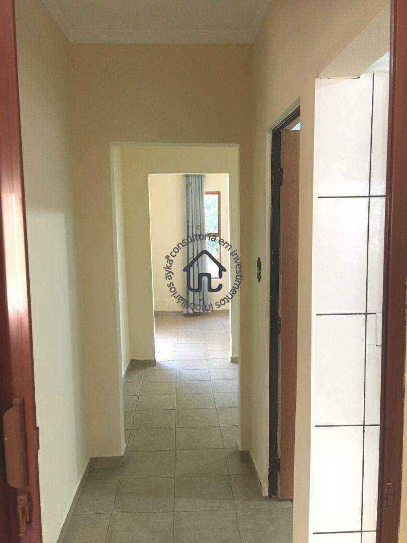 Dois quartos, sala de jantar/estar, banheiro, cozinha com armários e área de serviço.