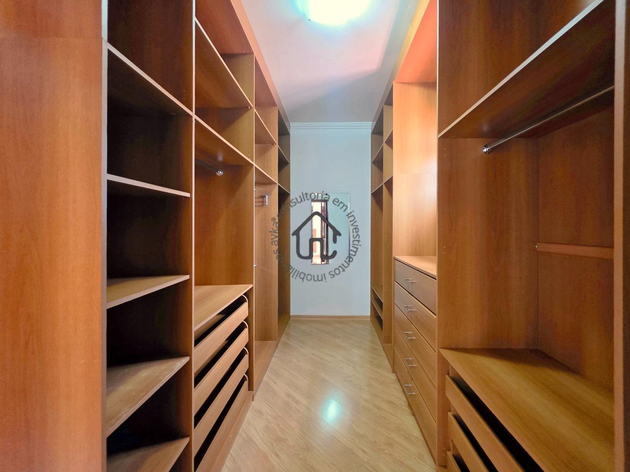 Sala para dois ambientes, sala de TV, lavabo, cozinha igualmente equipada com armários planejados e área de serviço.