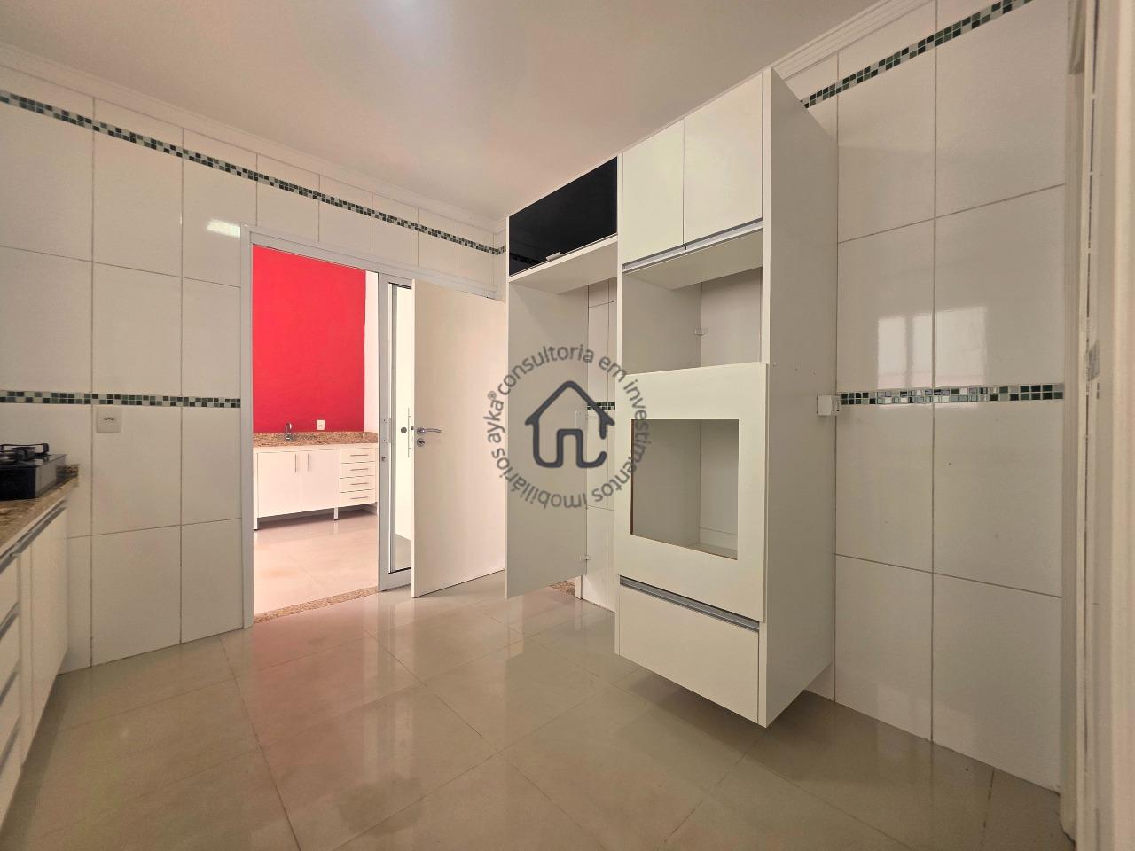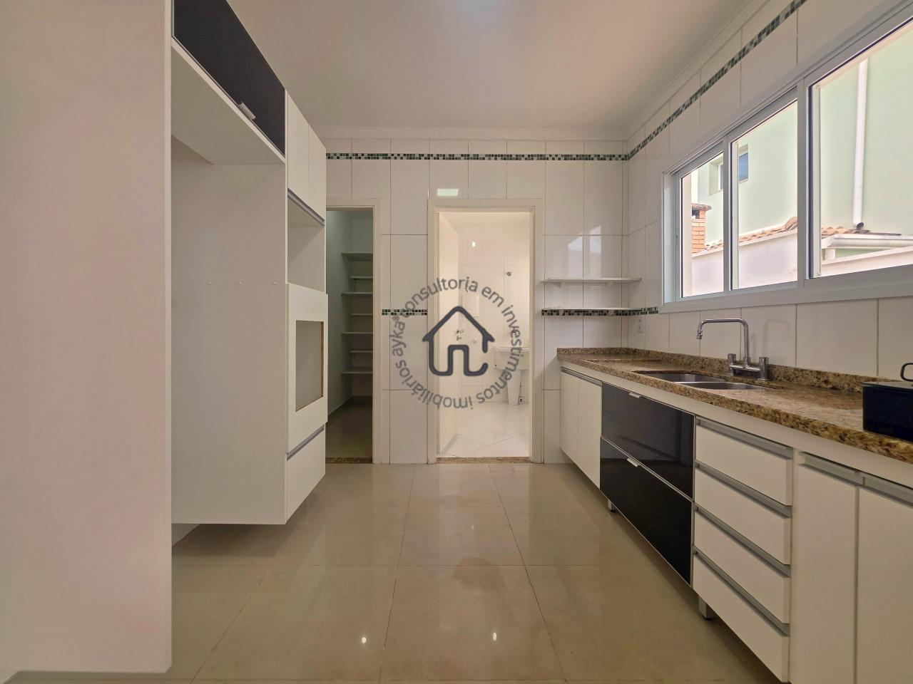 Espaçosa sala para dois ambientes, lavabo, cozinha equipada com armários, despensa e área de serviço.