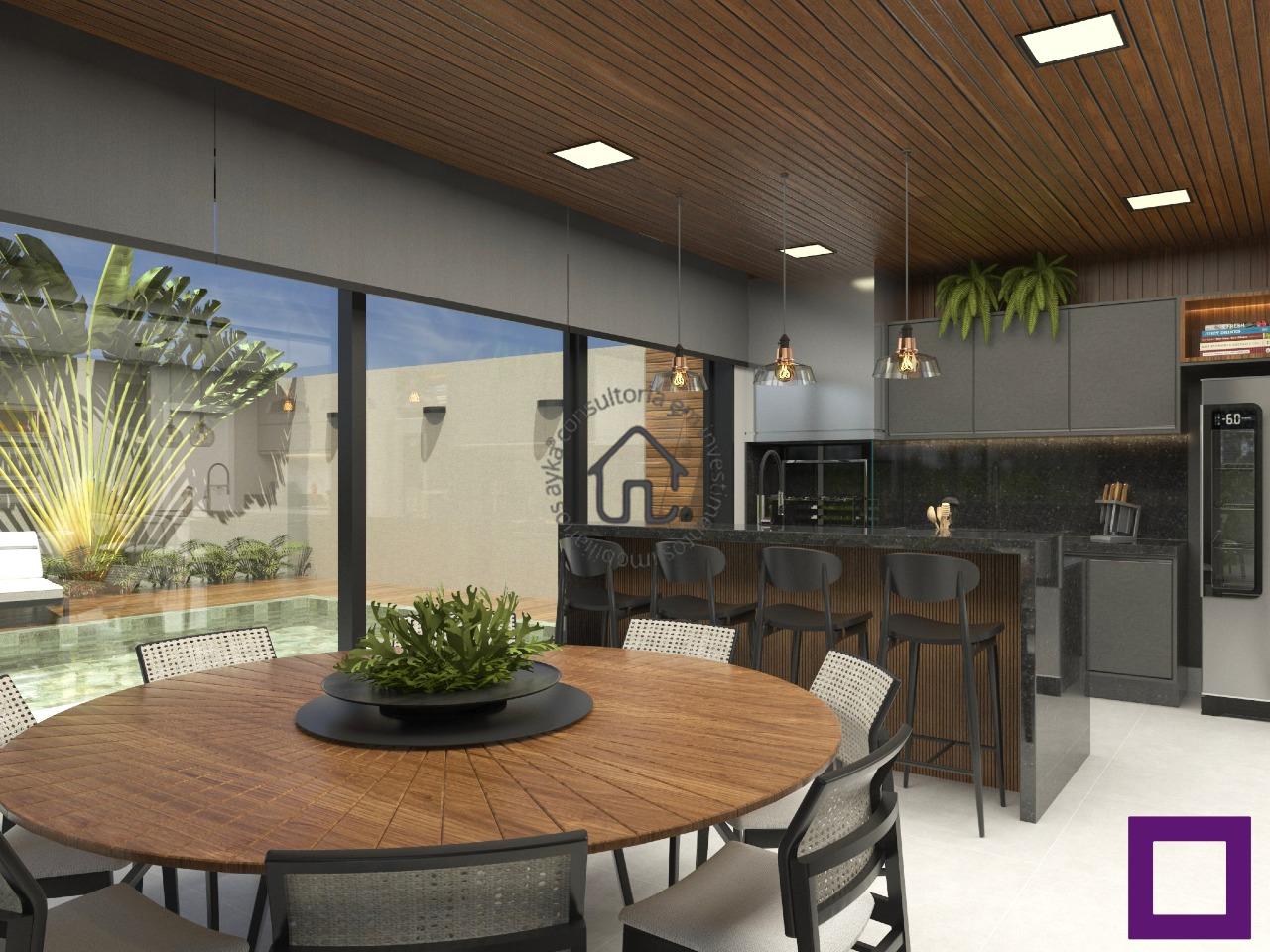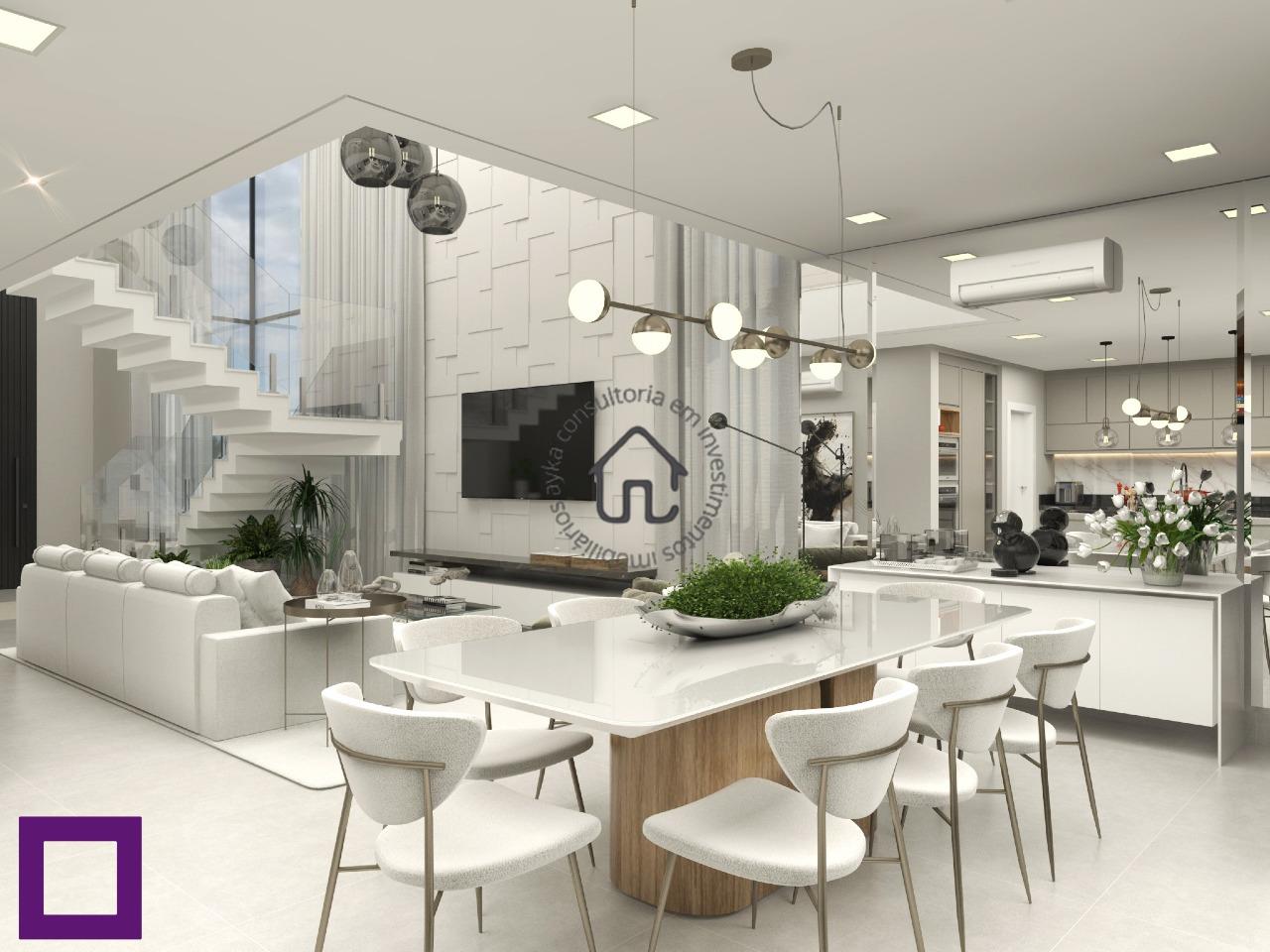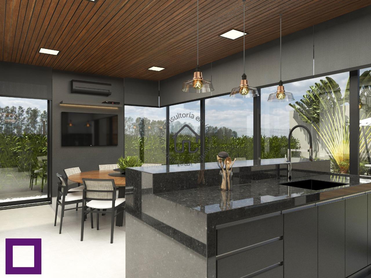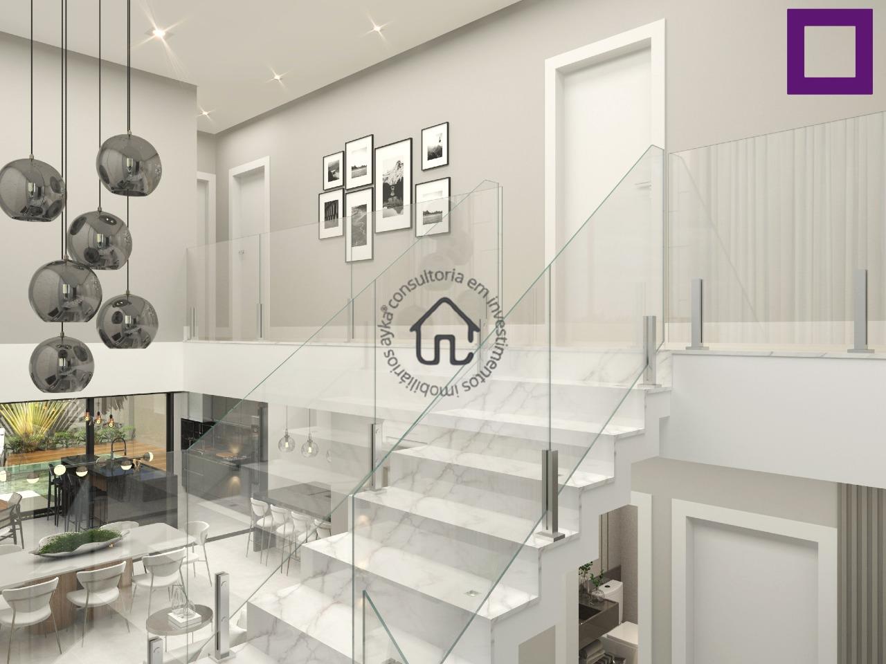 Ampla sala para dois ambientes com pé-direito elevado (excelente iluminação natural), lavabo, escritório, cozinha com design moderno e mobiliário planejado, despensa e área de serviço.