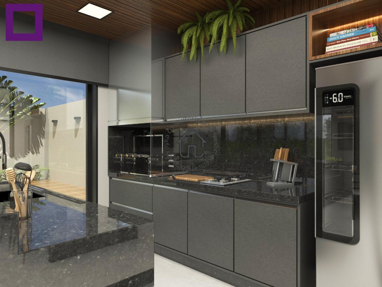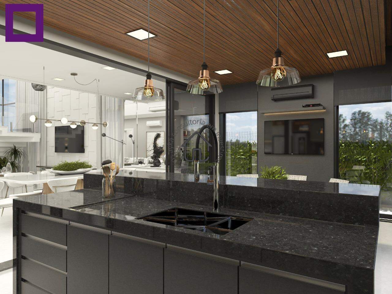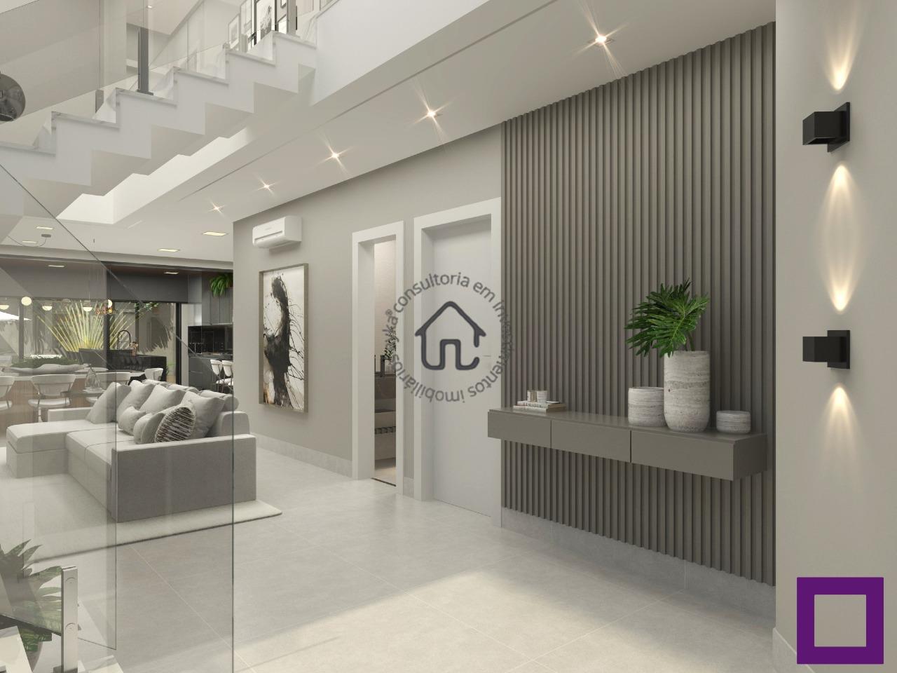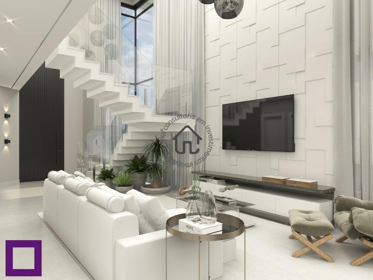 Ampla sala para dois ambientes com pé-direito elevado (excelente iluminação natural), lavabo, escritório, cozinha com design moderno e mobiliário planejado, despensa e área de serviço.