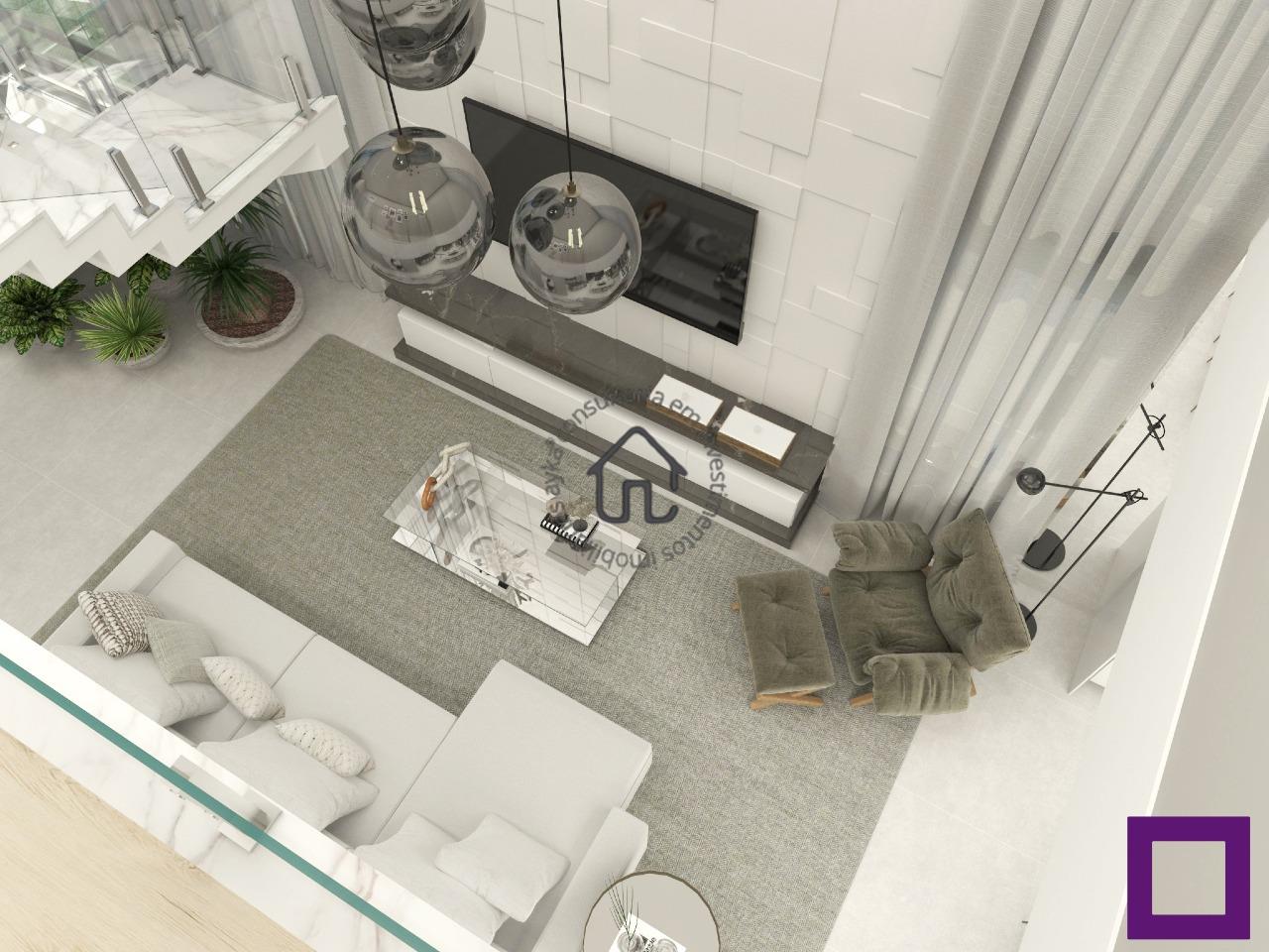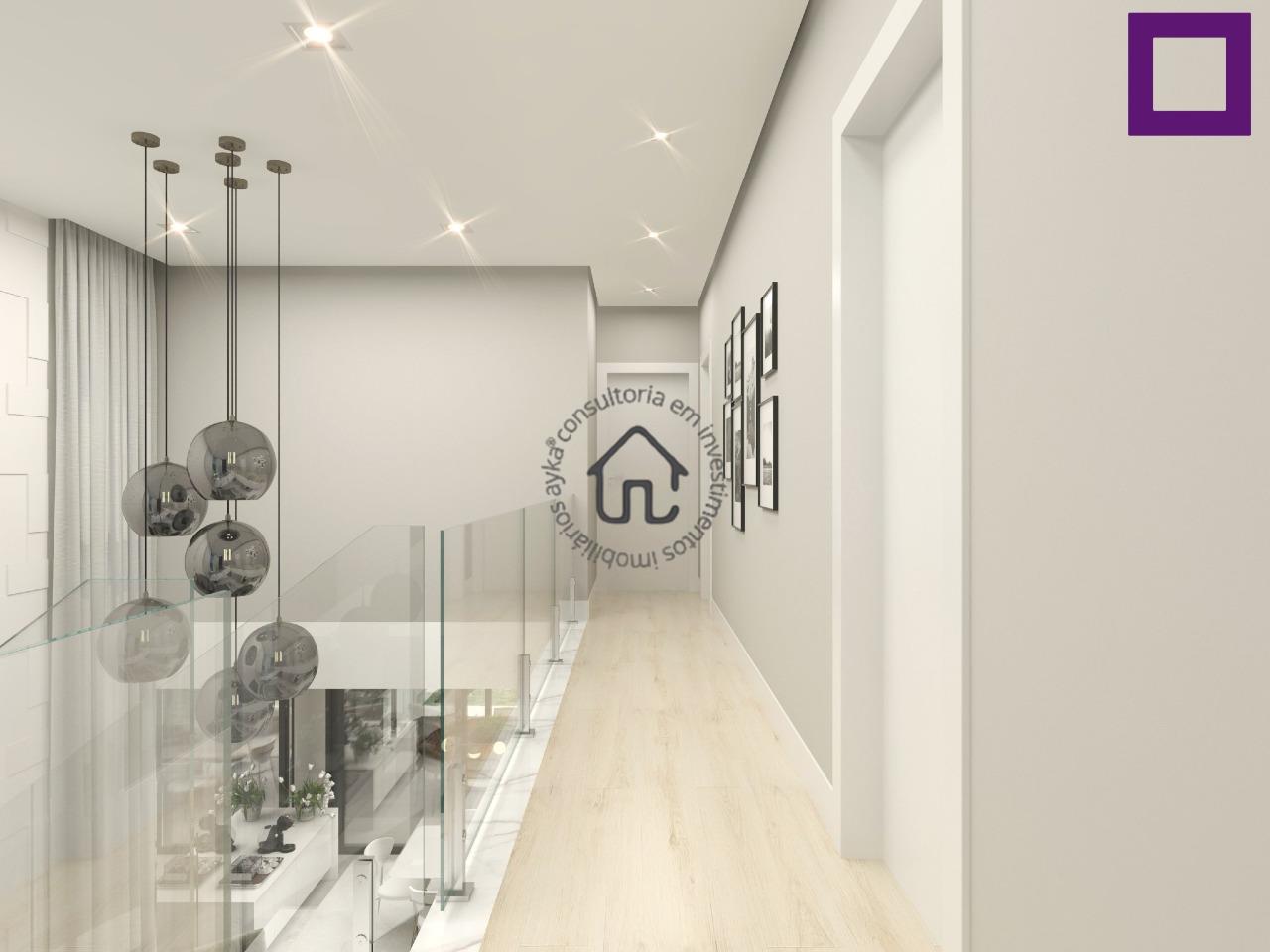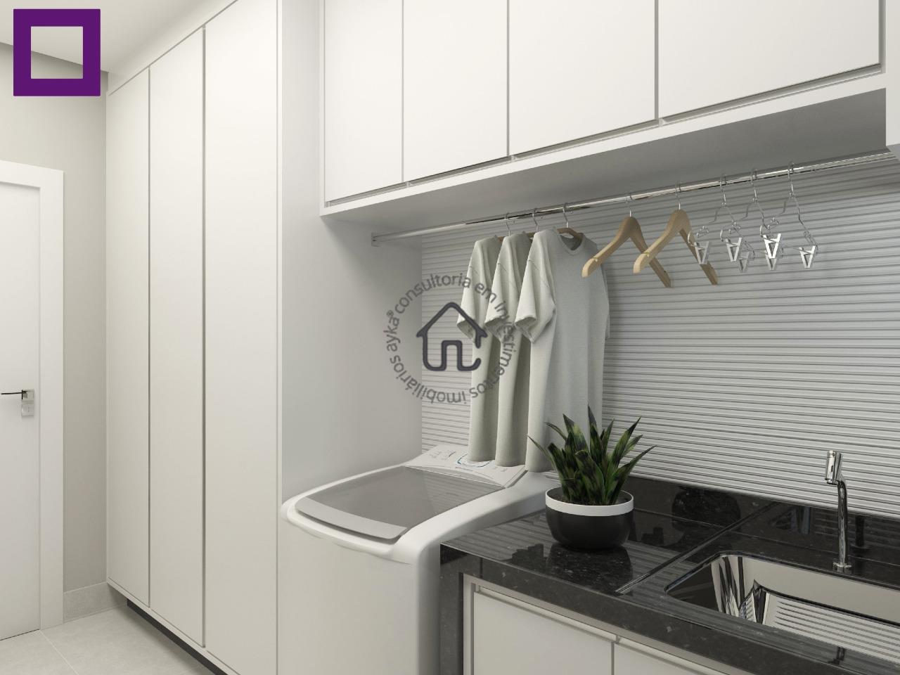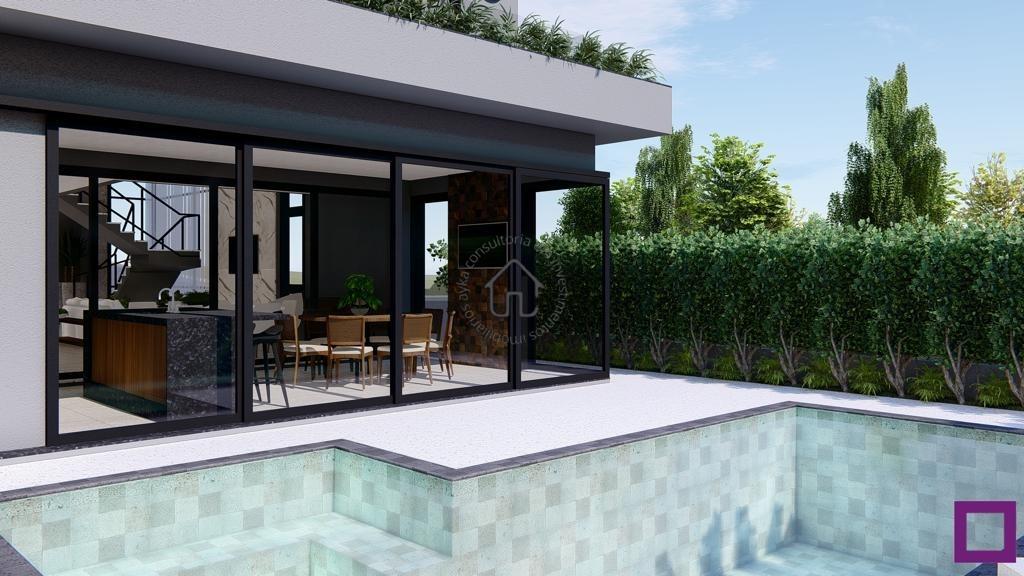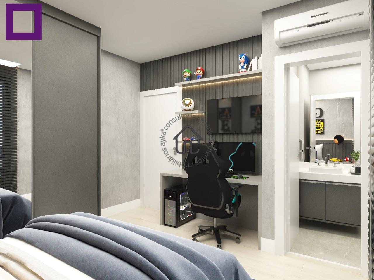 Ampla sala para dois ambientes com pé-direito elevado (excelente iluminação natural), lavabo, escritório, cozinha com design moderno e mobiliário planejado, despensa e área de serviço.