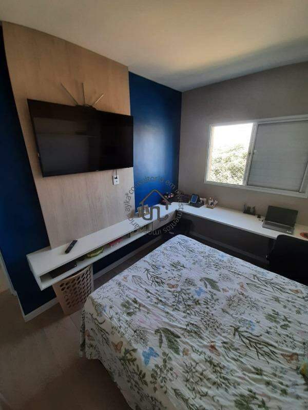 Móveis planejados na sala, banheiro, quarto casal e cozinha, proporcionando praticidade e organização.