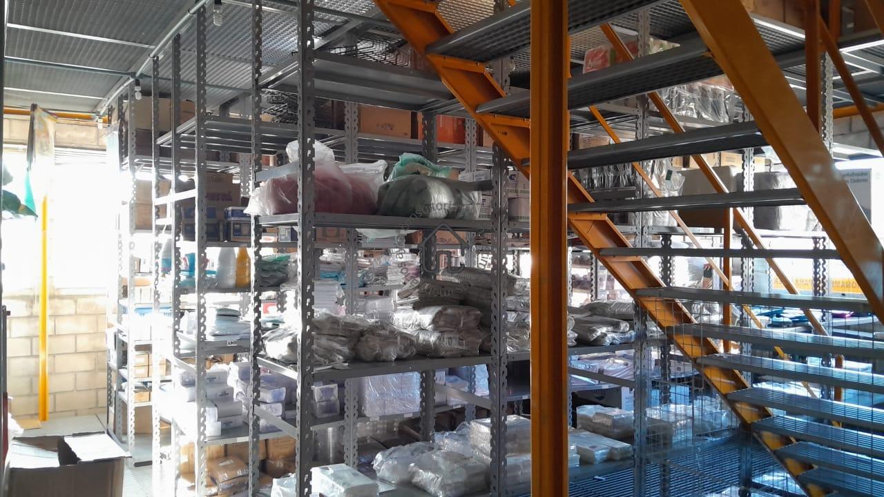 Fachada Principal: salão com área de vendas, estoque com mezanino metálico, acesso aos 3 níveis e elevador de carga, escritório, 2 banheiros e copa.
