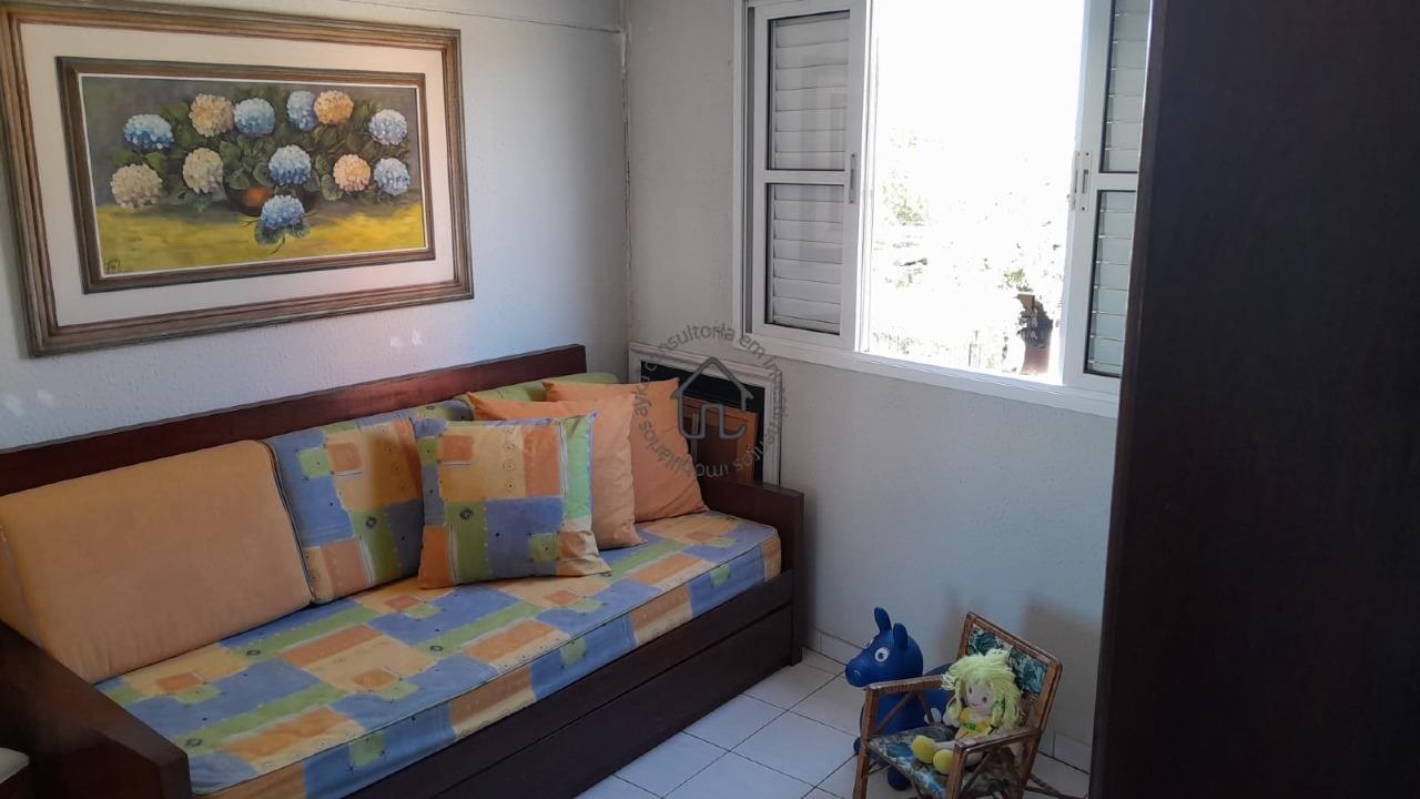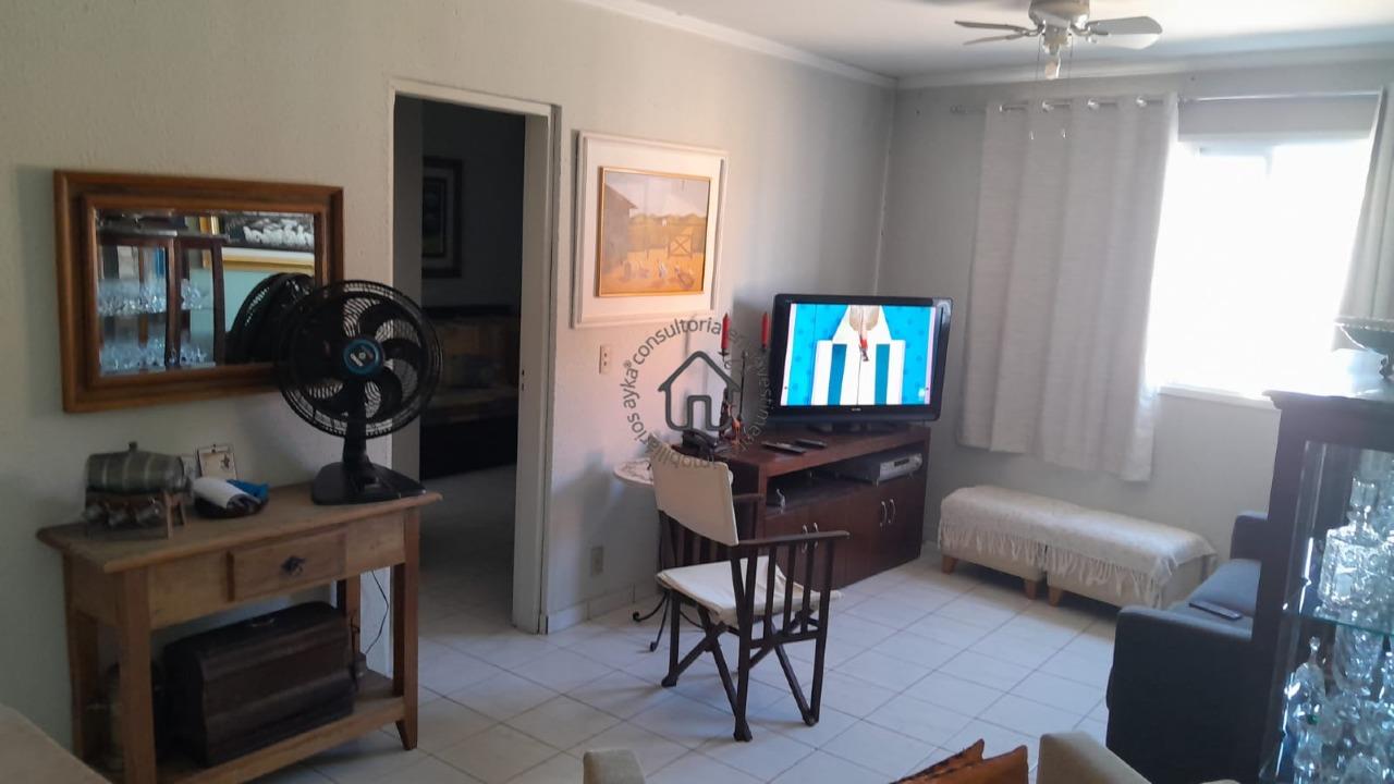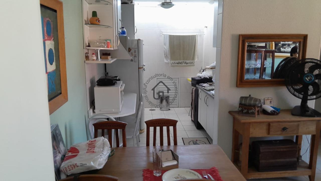 Apartamento andar superior: sala dois ambientes, cozinha e suíte.