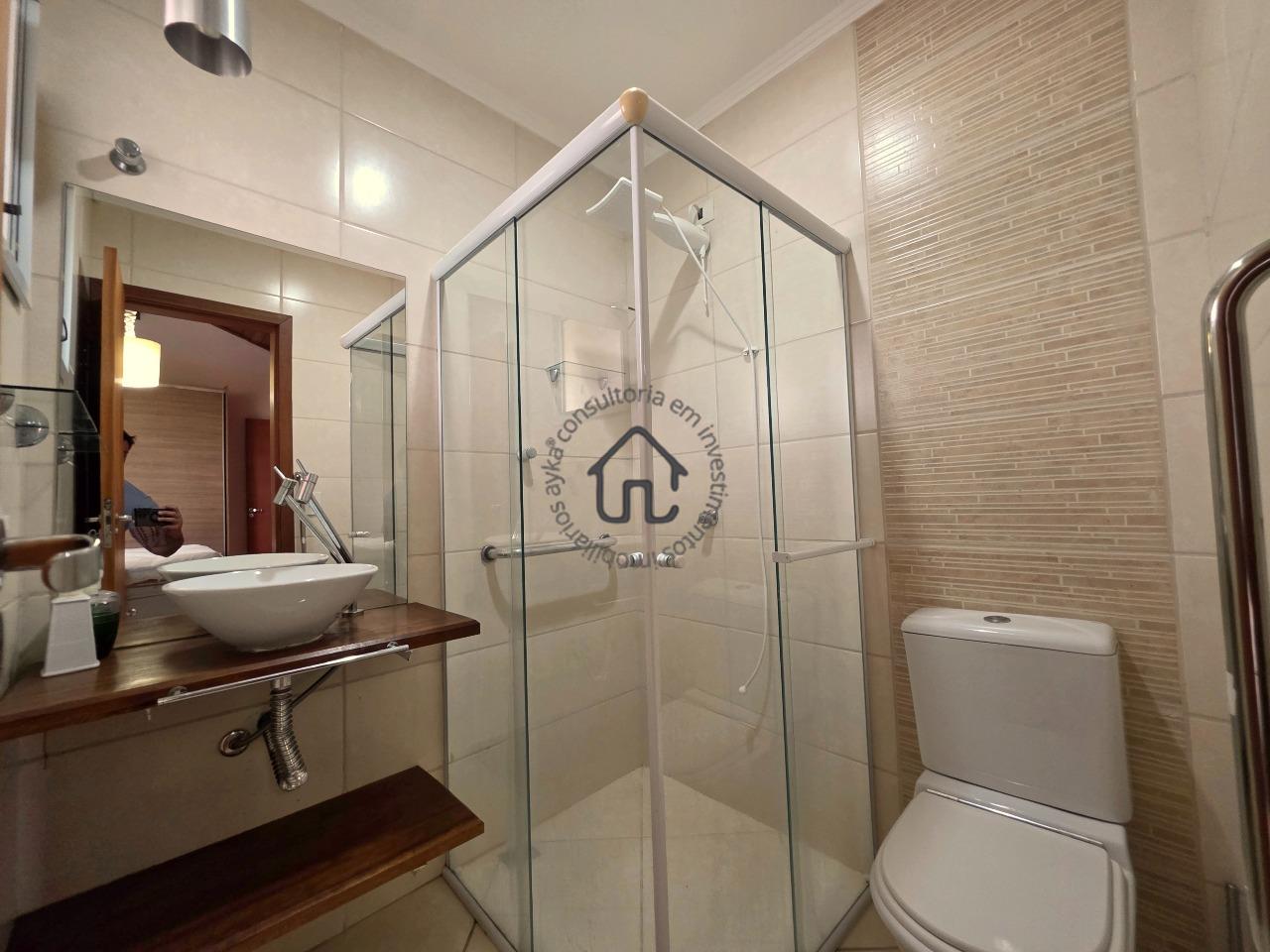 No pavimento superior estão localizadas as quatro suítes, todas completas, com armários planejados, banheiros bem equipados e sacada. A suíte master se destaca pelo alto padrão de conforto, contando com closet, hidromassagem, chuveiros e cubas duplas.