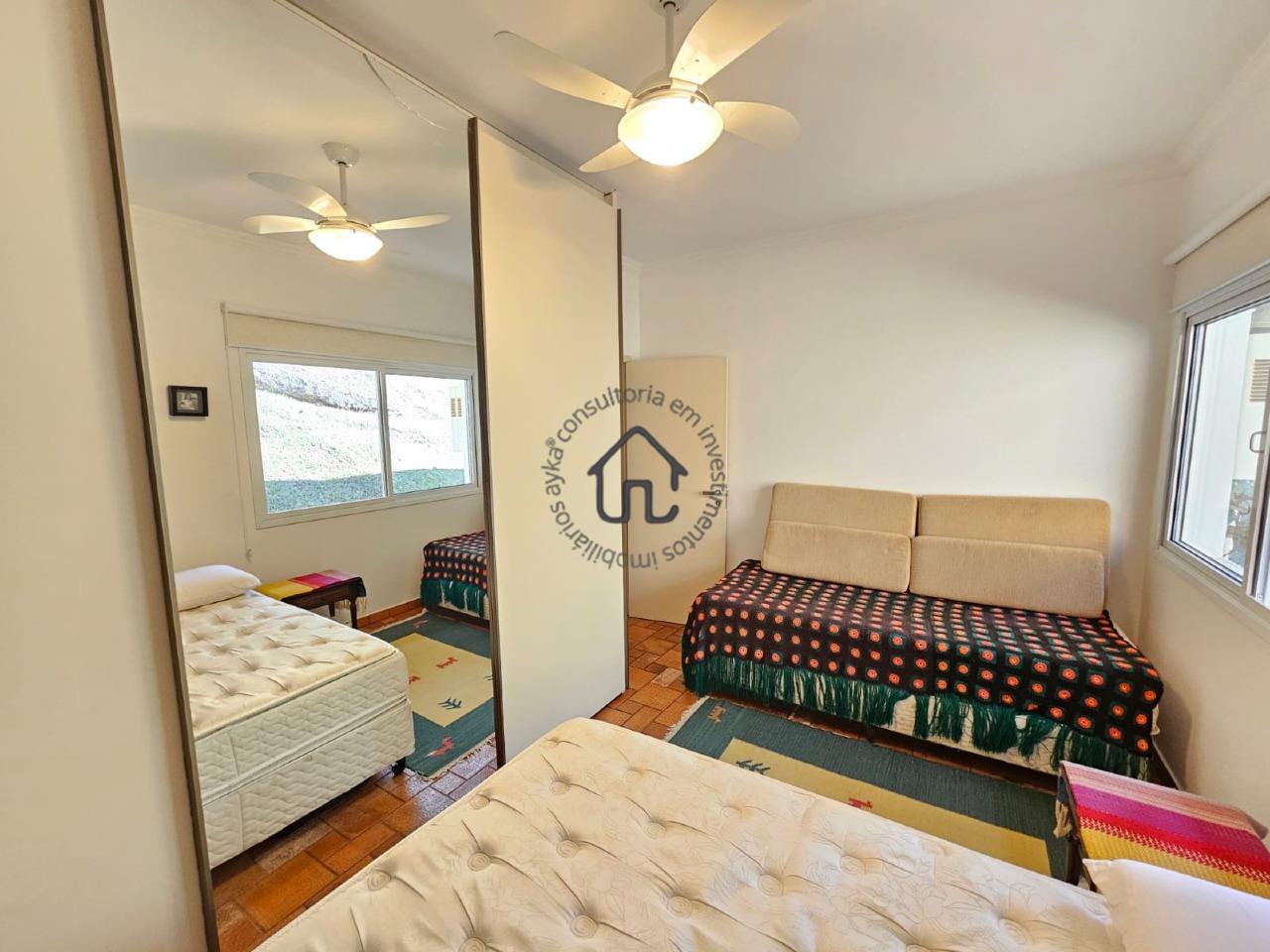 São dois quartos equipados com armários e ar-condicionado, sendo um suíte.
