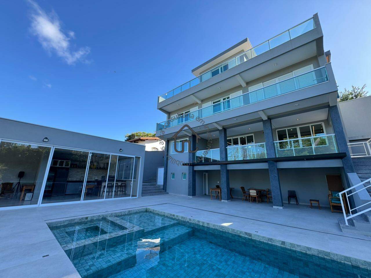 Para completar, a propriedade conta com quadra de areia, casa de apoio completa e está situada na parte alta do condomínio, oferecendo vista panorâmica, ventilação natural e fácil acesso interno.