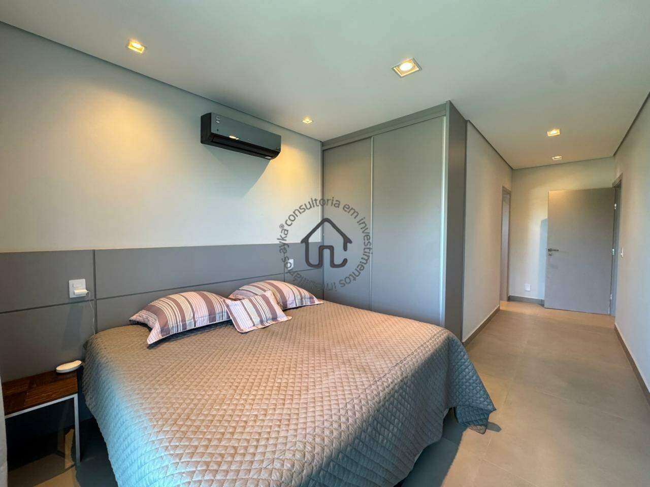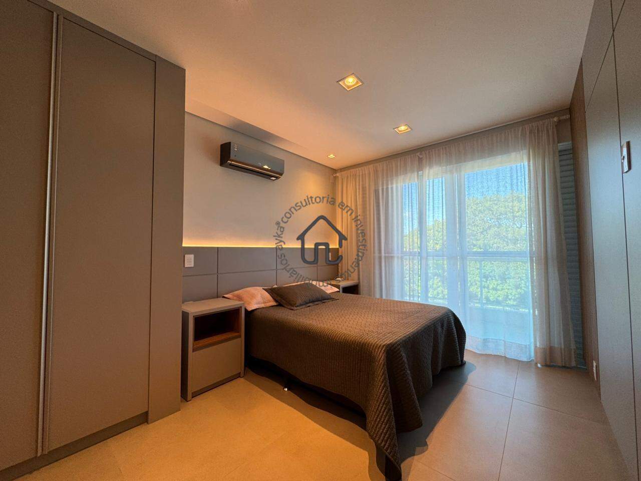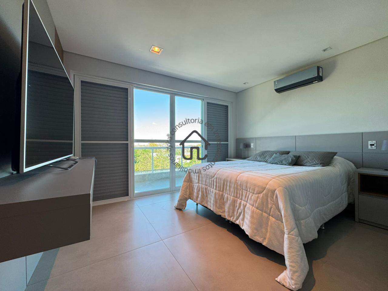 São 4 quartos (suítes) amplas, todas com armários planejados de alto padrão e sacadas generosas que convidam a apreciar a paisagem. A suíte superior é um espetáculo à parte, com sacada 360° e uma vista deslumbrante para o pôr do sol e para a área verde um verdadeiro refúgio privativo.