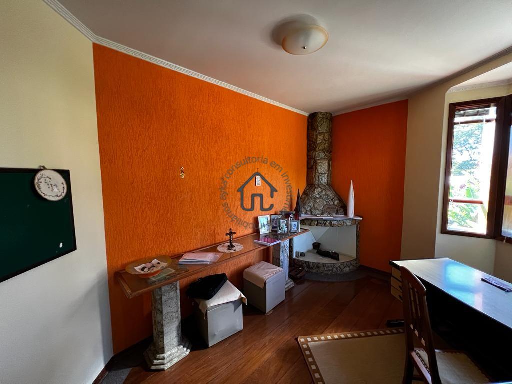 Ao nível da rua, sala para dois ambientes com lareira, lavabo, cozinha com mobiliário planejado, despensa e área de serviço.