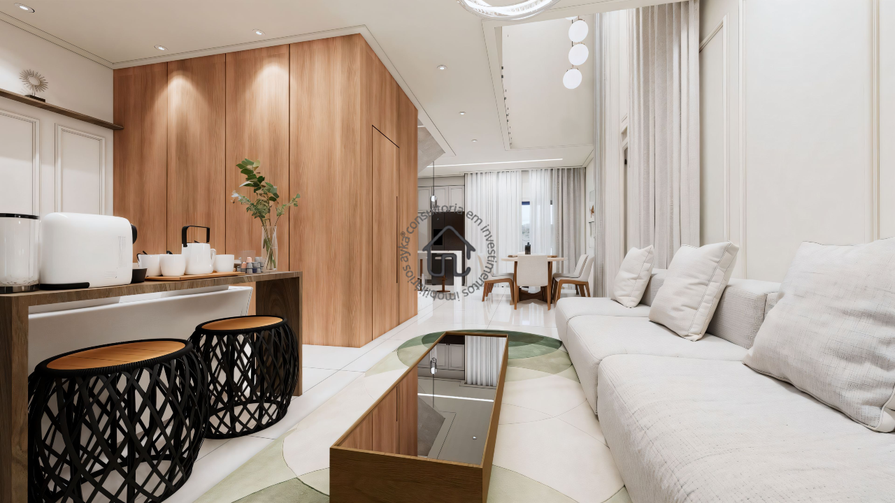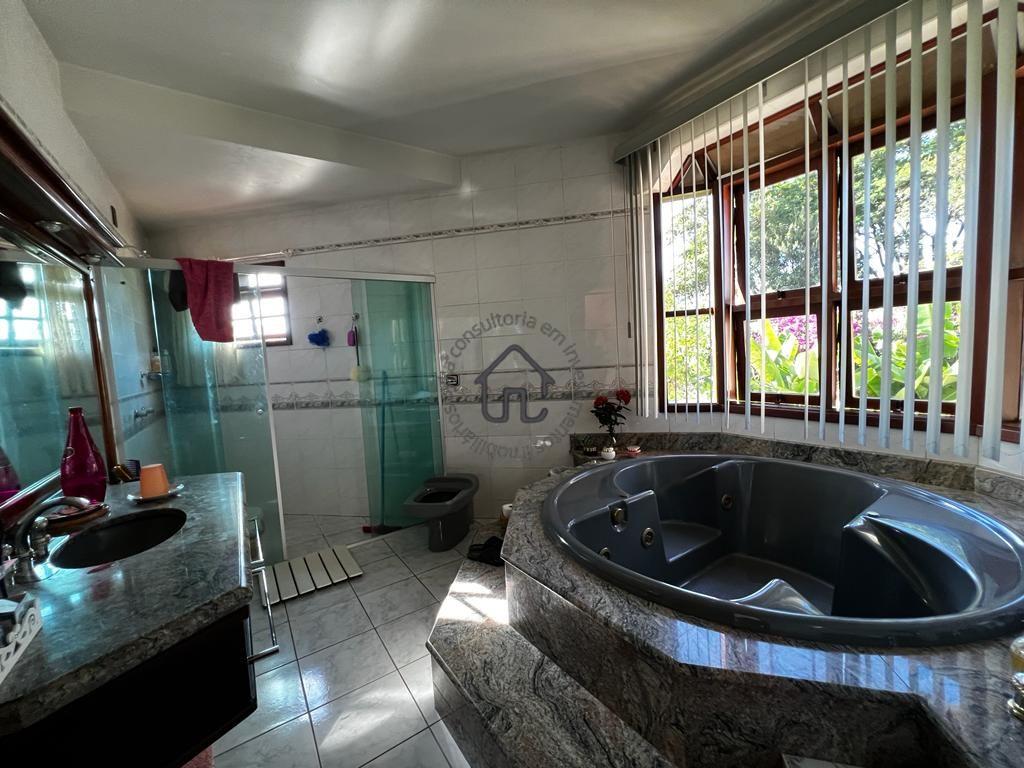 Pavimento superior composto por dois quartos com banheiro compartilhado, suíte master com closet senhor e senhora, hidromassagem e ampla varanda com vista para piscina e área verde preservada.