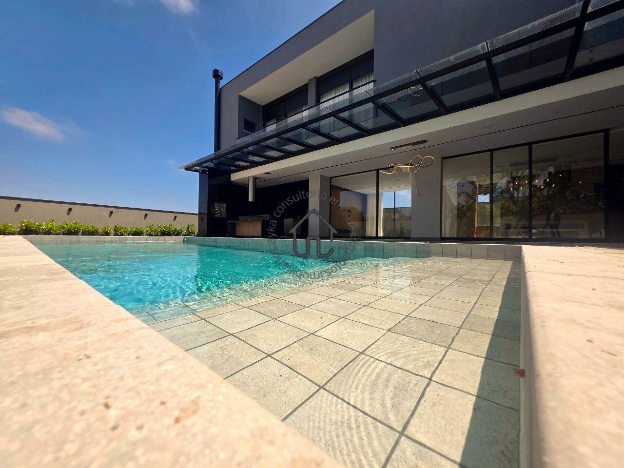 Área gourmet igualmente equipada com armários planejados, cooktop, churrasqueira parrilla e banheiro social, integrada com piscina, que é aquecida, tanto por aquecedor elétrico como solar.