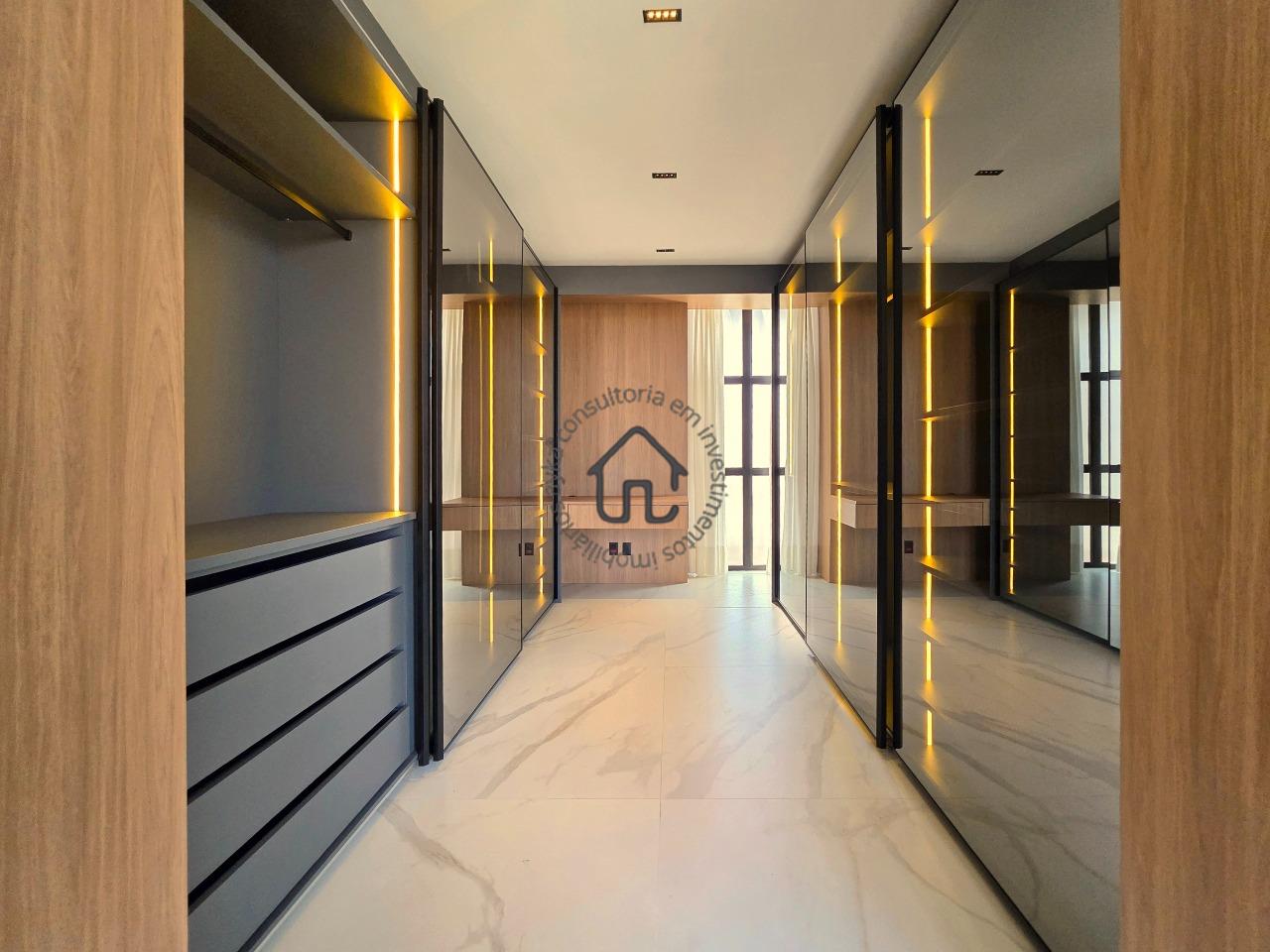 Suítes equipadas com armários planejados iluminados com Led e ar-condicionado.