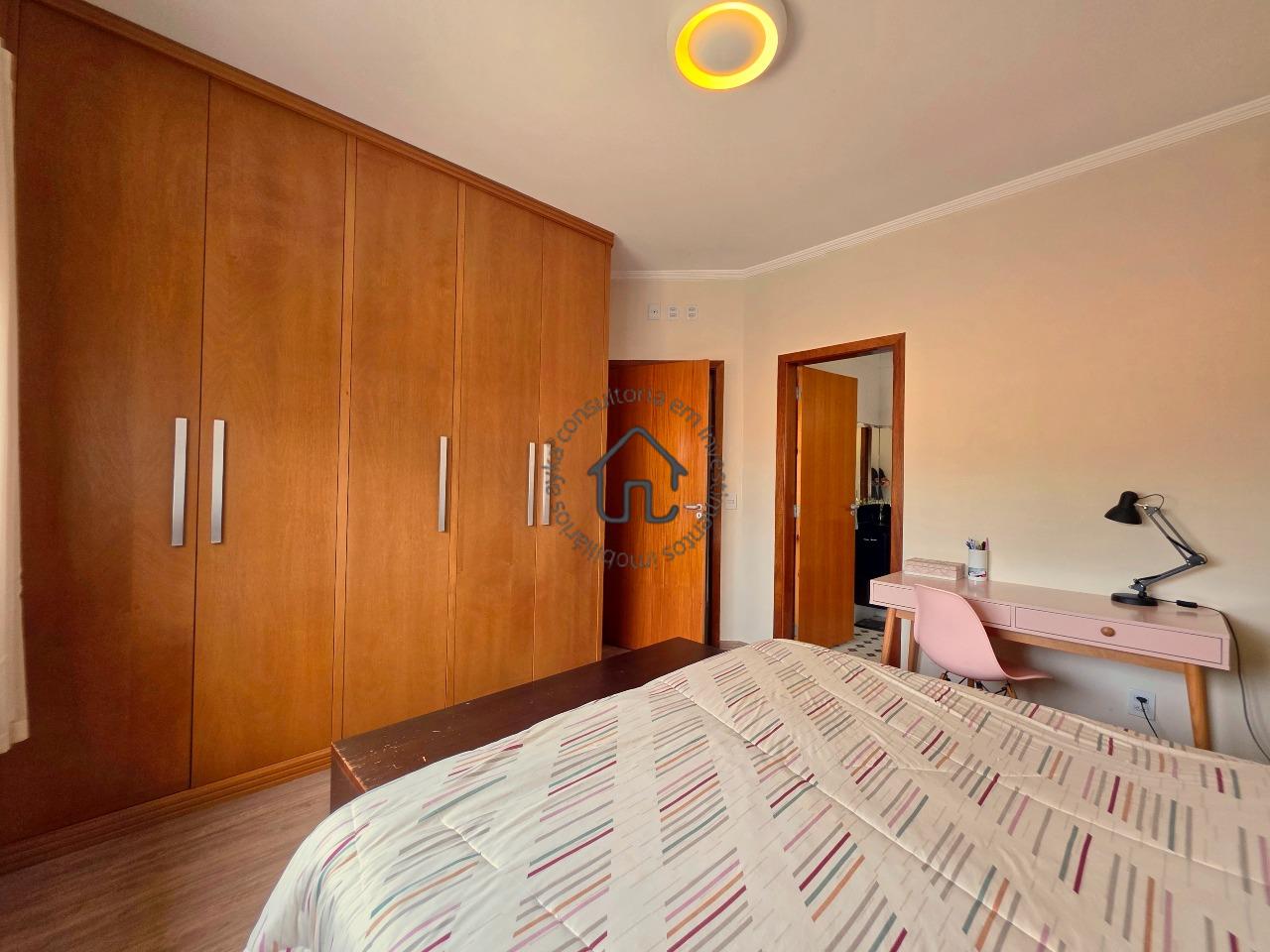 Master equipada com ar-condicionado e armários planejados.