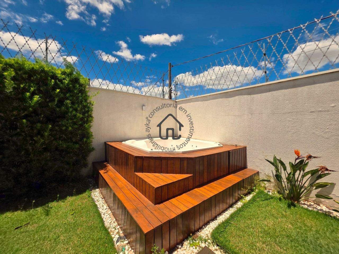 A área externa é um verdadeiro refúgio, ideal para receber amigos e familiares. Conta com uma banheira de hidromassagem, espaço gourmet com churrasqueira a carvão e um agradável jardim com gramado e paisagismo delicado, que trazem charme e tranquilidade ao ambiente.