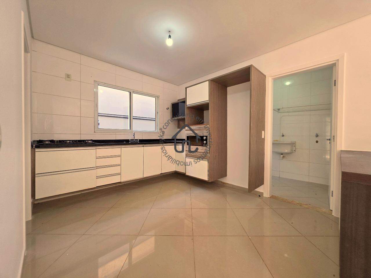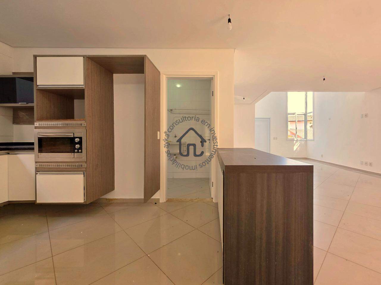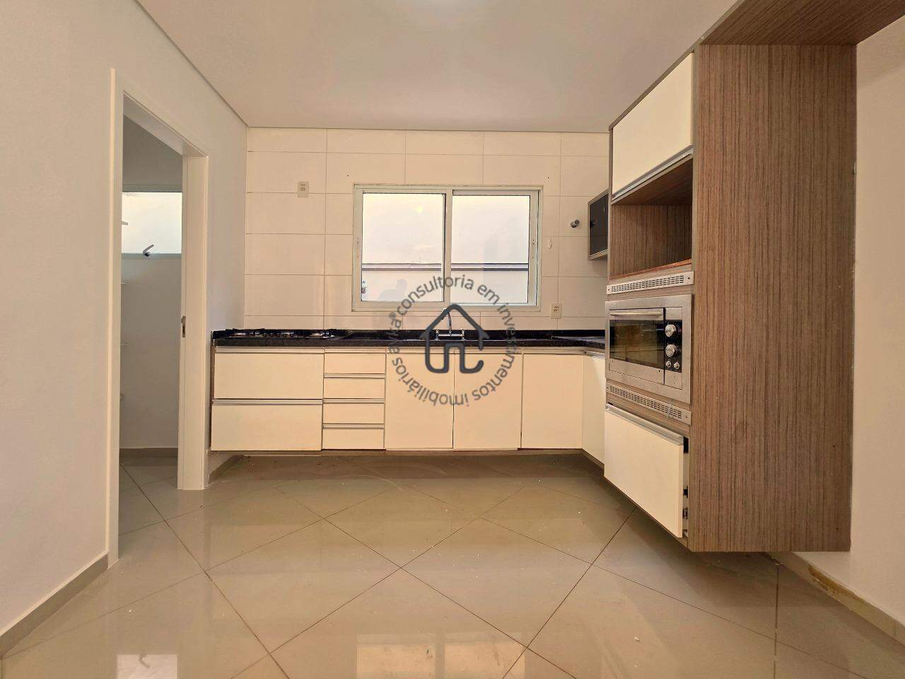 Ampla sala para dois ambientes, lavabo, cozinha com armários planejados, cooktop e forno elétrico, despensa e área de serviço.