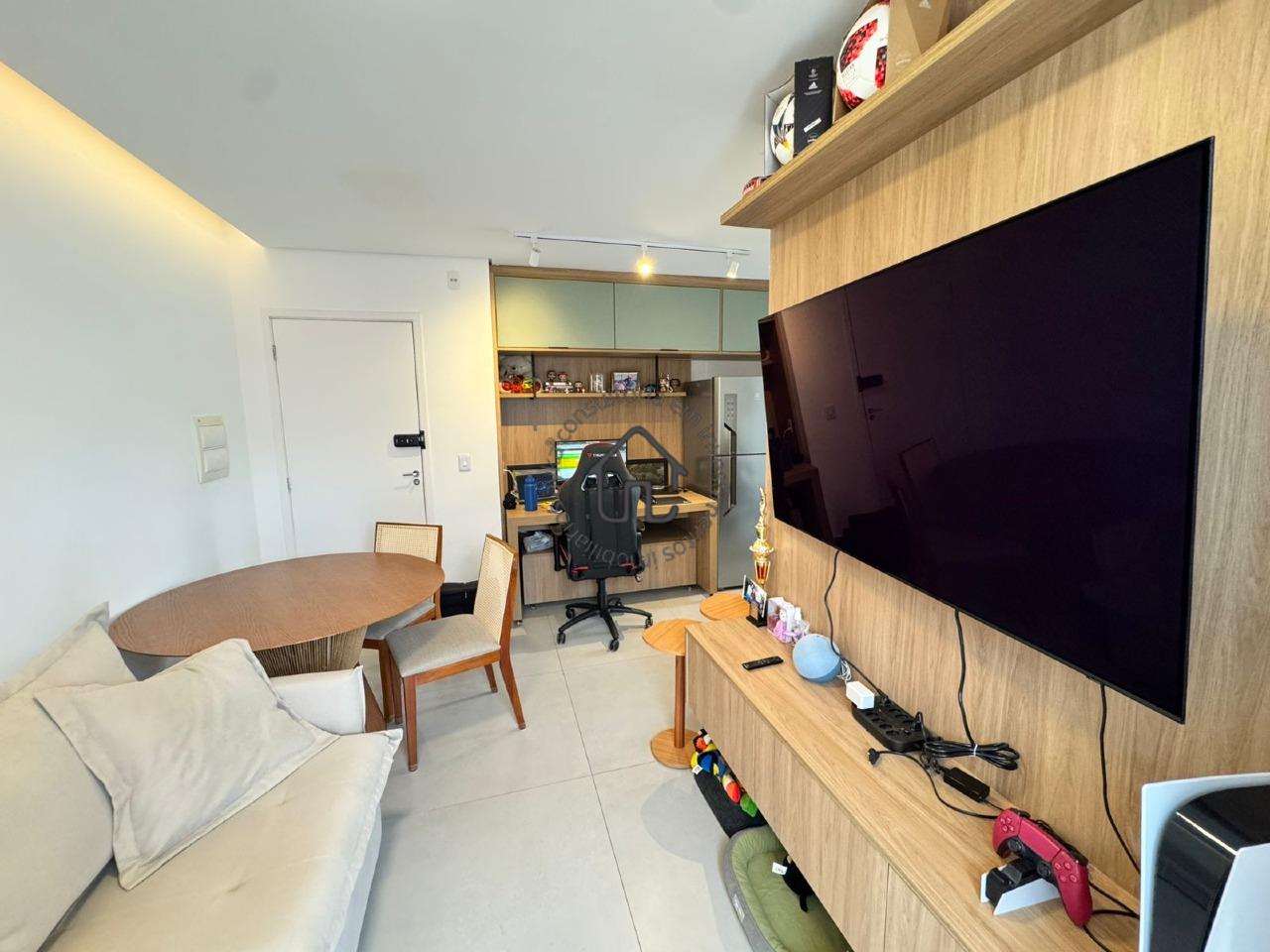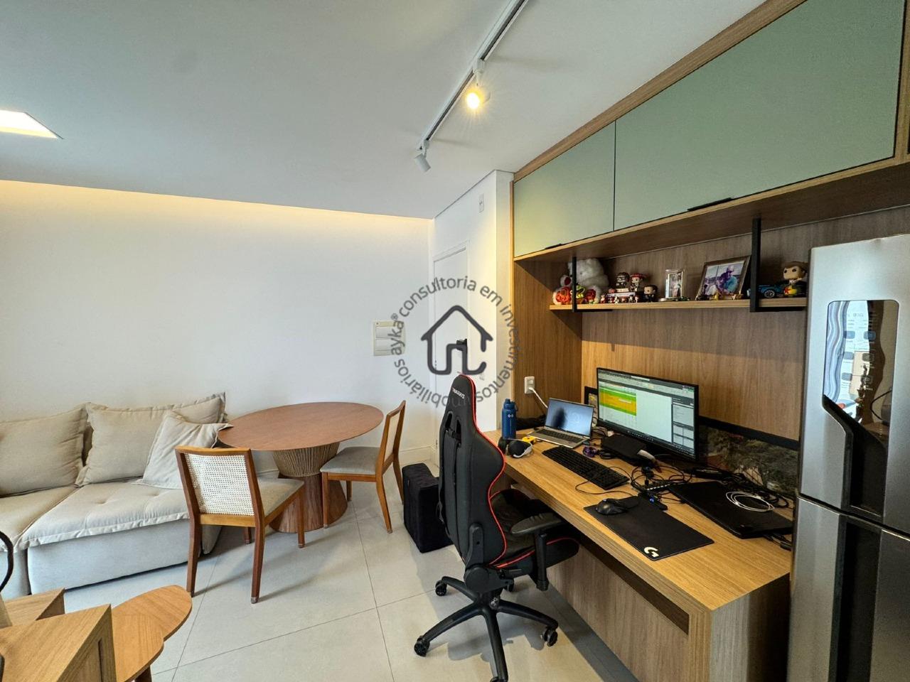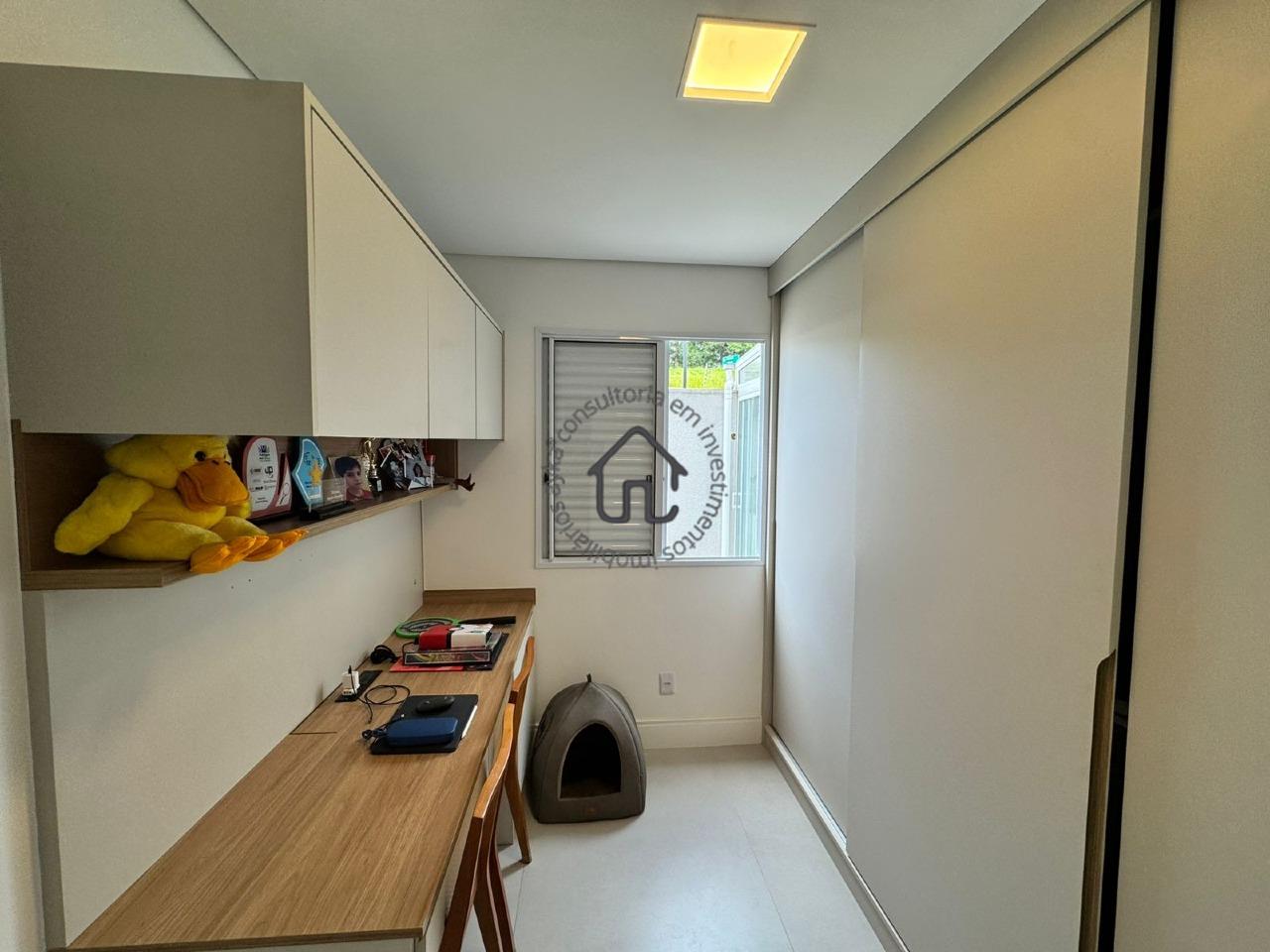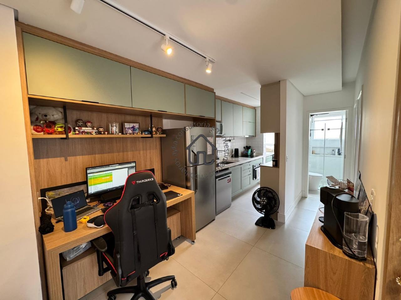 O imóvel possui dois quartos bem distribuídos, sendo um deles com armários planejados que oferecem organização e funcionalidade, enquanto o segundo foi revertido para um escritório, ideal para quem trabalha em home office, mas que pode ser facilmente adaptado novamente como quarto. A área social é aconchegante e integrada, com sala de jantar conectada à sala de TV, criando um ambiente perfeito para receber amigos e familiares. O sofá, o rack da sala e o rack do corredor permanecem no imóvel, agregando ainda mais praticidade e economia.