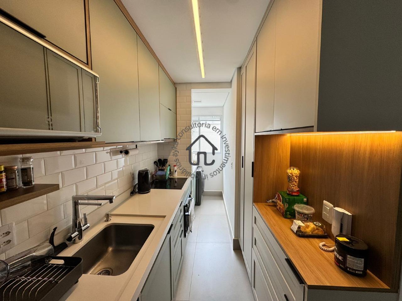 A cozinha e a lavanderia contam com armários planejados e já estão totalmente equipadas com fogão, forno e máquina de lavar, proporcionando comodidade desde o primeiro dia e tornando a mudança muito mais simples.