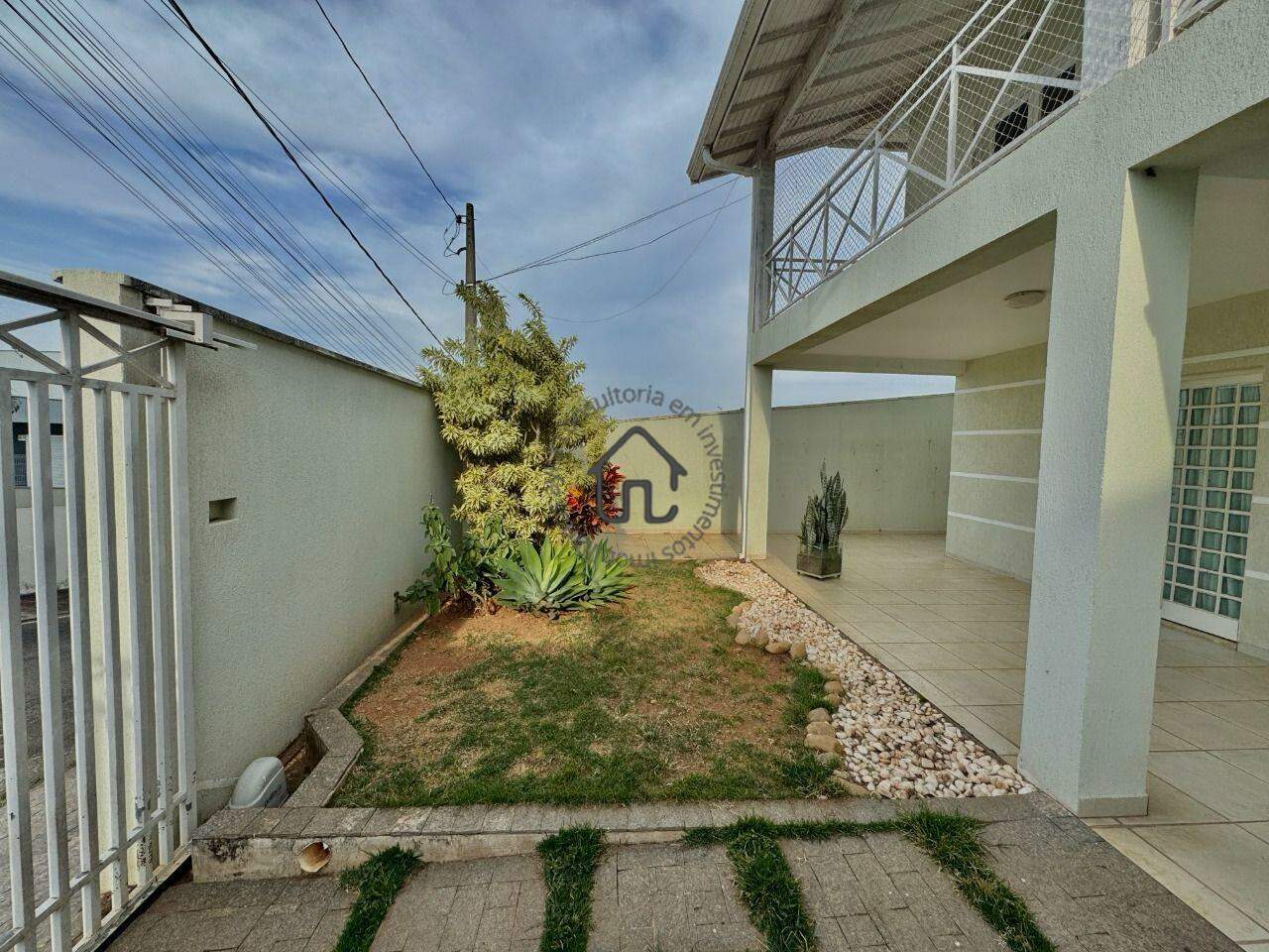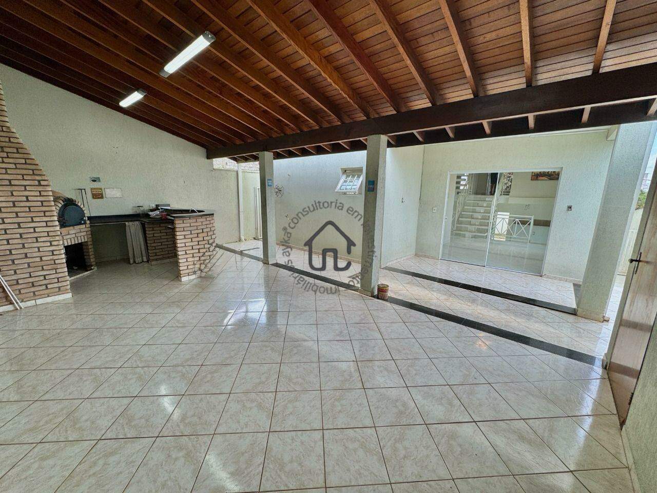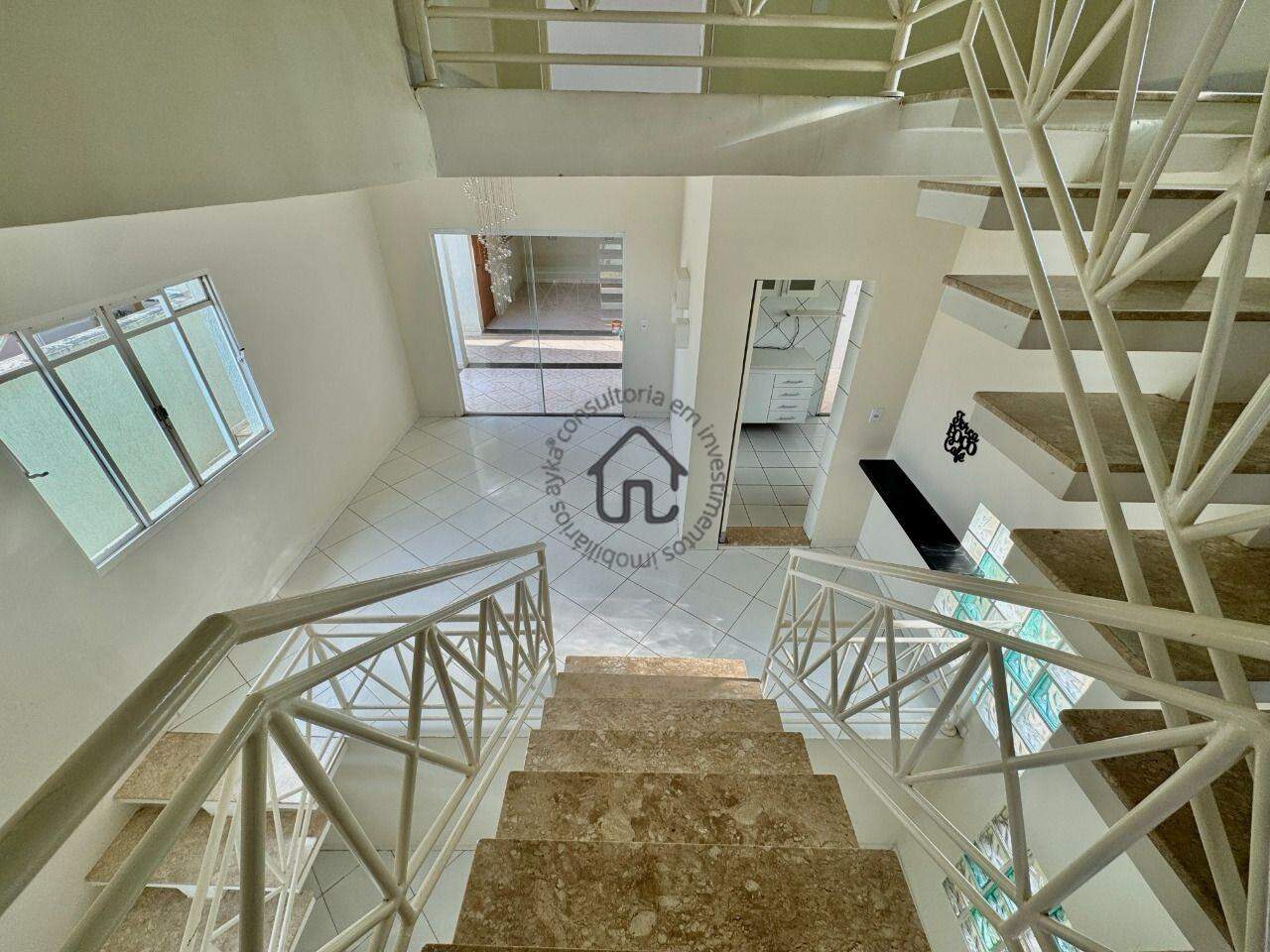 Esta casa, com 250 m² de área construída, oferece uma distribuição inteligente dos ambientes e muito conforto para toda a família. No pavimento térreo, dispõe de duas vagas de garagem — uma coberta e outra descoberta — além de um escritório privativo, lavabo e uma acolhedora sala de TV. Subindo o primeiro lance de escadas, encontra-se a sala de jantar integrada à cozinha, lavanderia e à área gourmet com churrasqueira, perfeita para receber amigos e familiares.